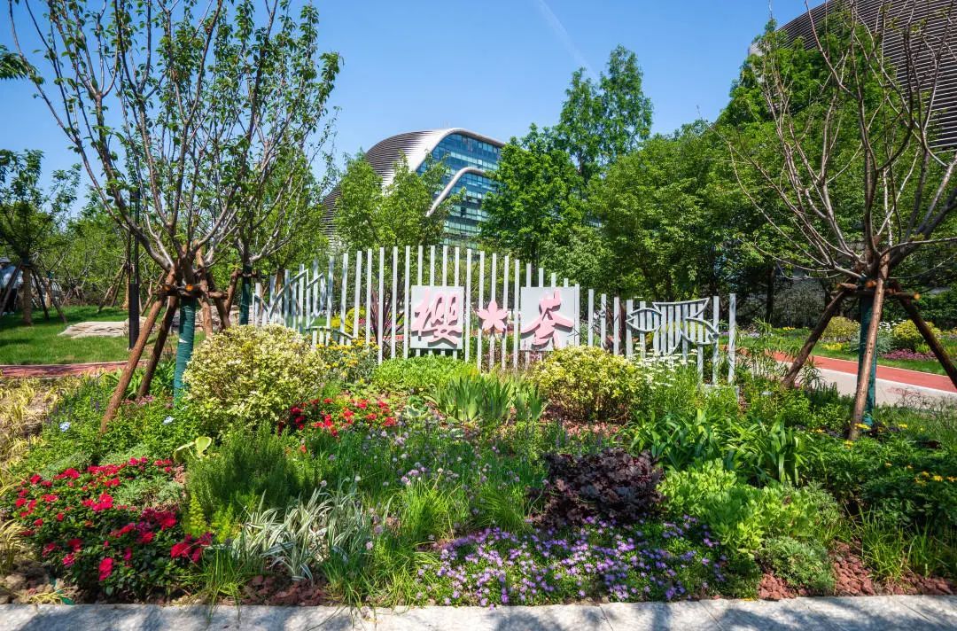 据长宁区绿管中心相关负责人介绍,改造前,这块绿道里就有不少樱花树,因此,设计师在保留樱花树等大型乔木的基础上以“樱荟”为主题,重新梳理了园内绿植。