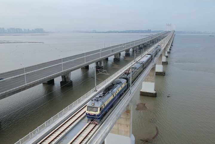 5月20日,检测列车通过新建福厦铁路泉州湾跨海大桥。