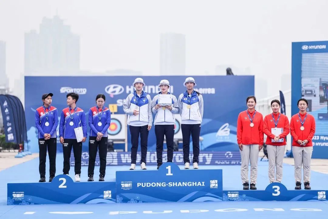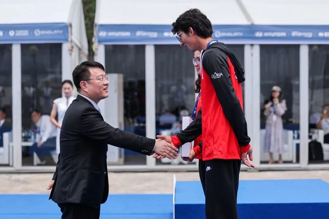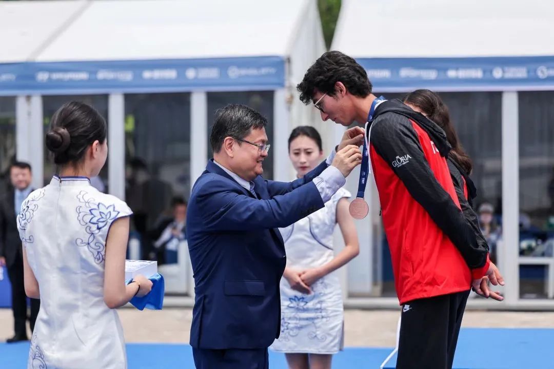 国际射箭联合会主席乌格·厄尔本,国家体育总局射击射箭运动管理中心主任、中国射箭协会主席梁纯,上海市政府副秘书长王平,上海市体育局局长徐彬,浦东新区副区长左轶梅,浦东新区区委宣传部副部长、文体旅游局局长孙毓为获奖选手颁奖