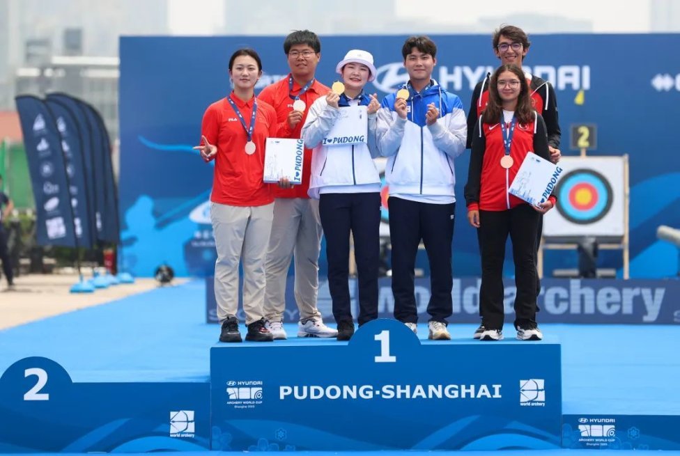 值得一提的是,回到主场作战的中国队,此役延续了新赛季以来的好状态,共斩获两银一铜。其中,安琦轩、张梦瑶、海丽玕组成的中国女队斩获反曲弓团体铜牌。在男子反曲弓团体项目中,王大鹏、李中原、齐翔硕三位中国选手则凭借默契的配合摘得银牌。在反曲弓混合团体项目中,王大鹏与张梦瑶搭档再次为中国队获得一枚宝贵的银牌。