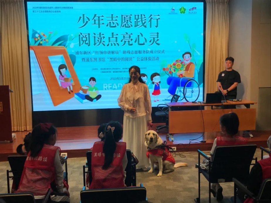 5月21日,在第33个全国助残日来临之际,浦东新区“红领巾讲解员”助残志愿服务队正式成立。当天小志愿者们在浦东图书馆集合,接受如何帮助视障人士的培训,他们将参与到浦东图书馆“黑暗中的阅读”系列公益活动中,与特殊儿童一同学习阅读。