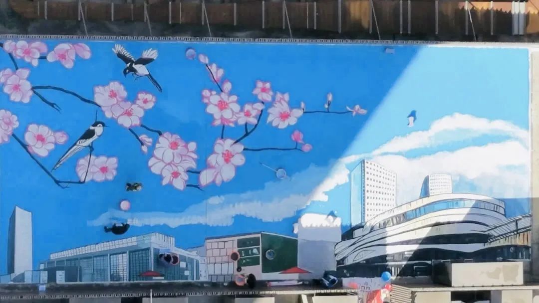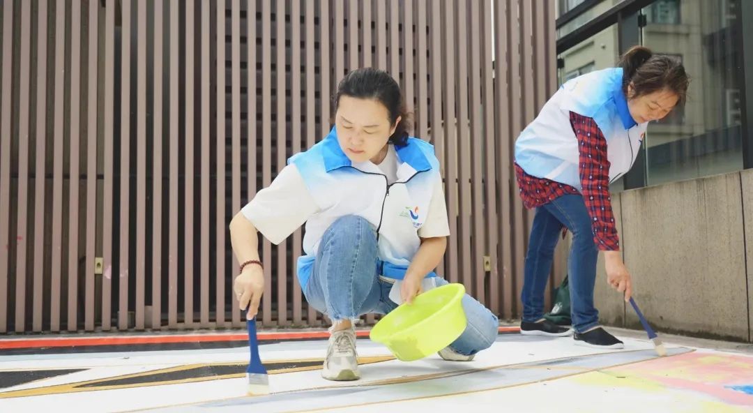 屋顶彩绘“共绘‘嘉’画”是嘉兴路街道党建联建与文明实践特色品牌项目。自2019年起,街道利用新时代文明实践分中心200多平方米的屋顶露台,组织社区学生与志愿者共同创作彩绘作品,已完成《国色春香》《山河无恙 国泰民安》《蓝图已绘就 奋进正当时》《踔厉奋发 勇毅前行》等多幅屋顶彩绘。
