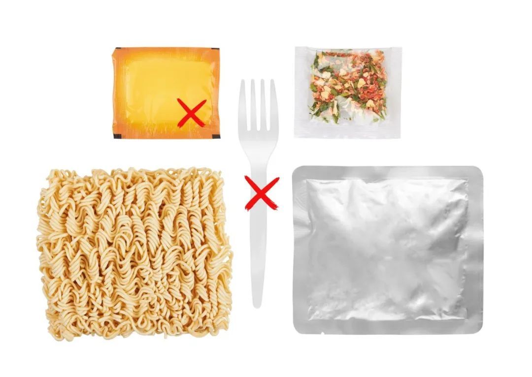 依据《定量包装商品净含量计量检验规则》(JJF 1070-2005),不论商品的包装材料,任何与该商品包装在一起的其他材料,均不得计为净含量。如方便面中的调料包、叉子等不计为净含量。