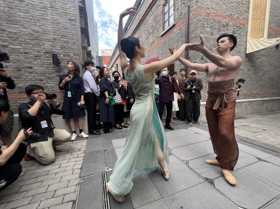 演出版块通过合作中国上海国际艺术节中心等头部文化机构,打破镜框式舞台,让纵横交错的8条弄堂变身艺术的容器,利用3D投影等科技手段,让光影与舞台艺术均在弄堂中流动;通过合作青年戏剧团队,在今潮8弄演艺新空间“有戏堂”表演,促进空间“好戏连台”。