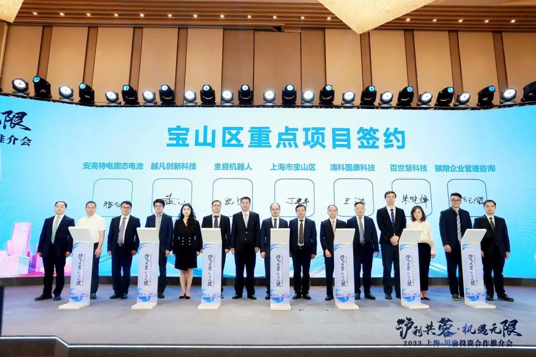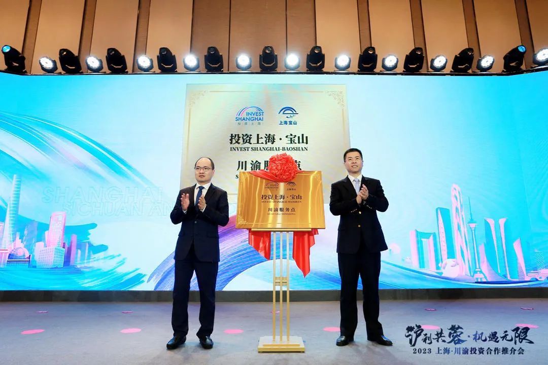 5月19日,“沪利共蓉·机遇无限”2023上海·川渝投资合作推介会在成都隆重举行。本次活动由上海市投资促进工作领导小组办公室、市人民政府合作交流办公室、宝山区人民政府、金山区人民政府共同主办,市投资促进服务中心、宝山区投资促进办公室、金山区投资促进办公室联合承办,中国银行等2023上海全球招商合作伙伴支持。活动上,投资上海·宝山川渝服务点、投资上海·金山川渝服务点揭牌,投资上海·沪川渝商会战略合作启动,搭建上海川渝两地政府、商会、机构、企业近距离沟通、全方位交流的合作平台。