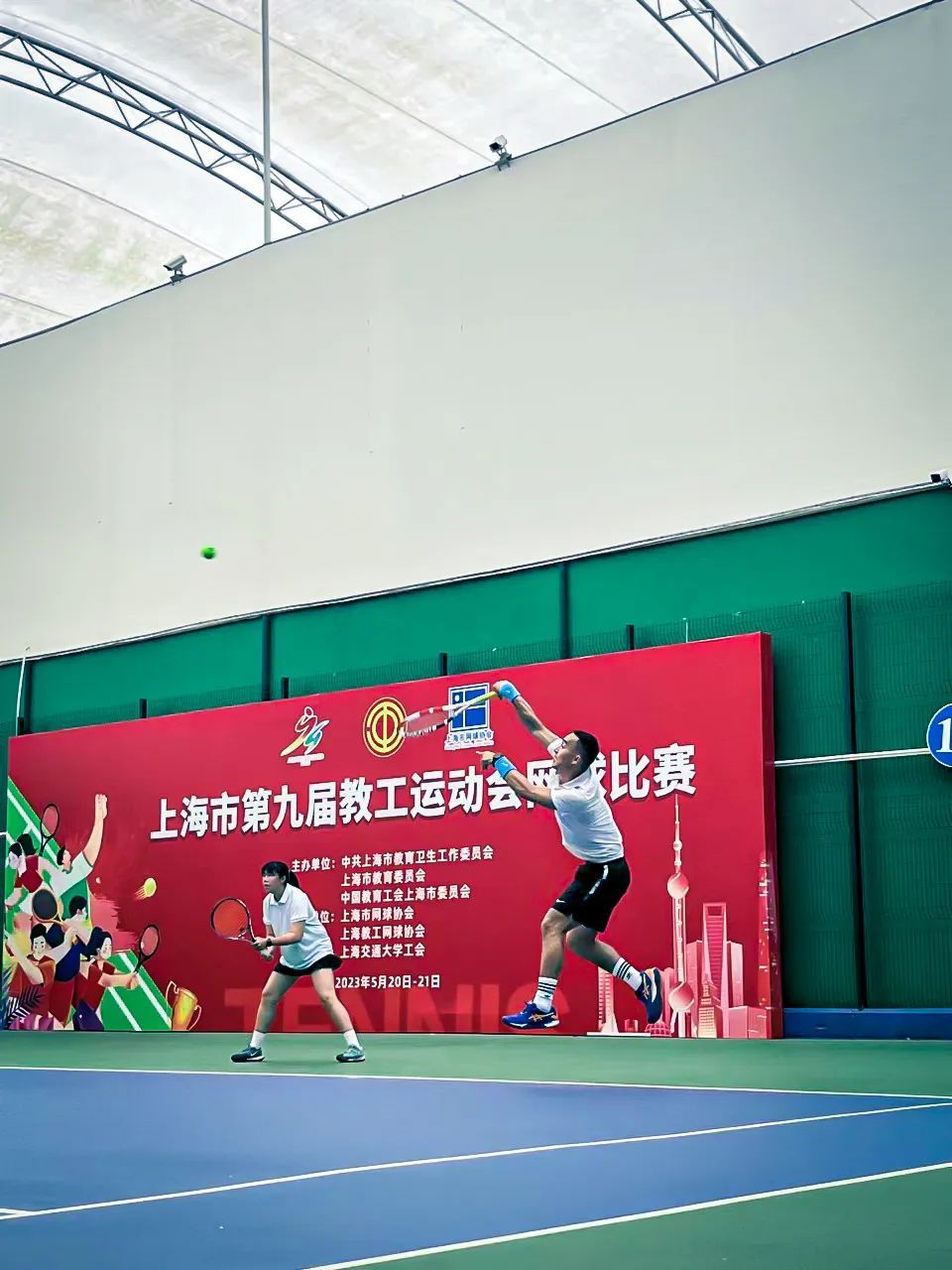 由中共上海市教育卫生工作委员会、上海市教育委员会、中国教育工会上海市委员会主办,上海市网球协会、上海交工协会、上海交通大学工会承办的上海市第九届教工运动会网球比赛于2023年5月20、21日在奉贤体育中心网球馆举行。经过两天的激烈角逐,松江教工网球队成为一匹黑马,一路过关斩将,勇夺桂冠。