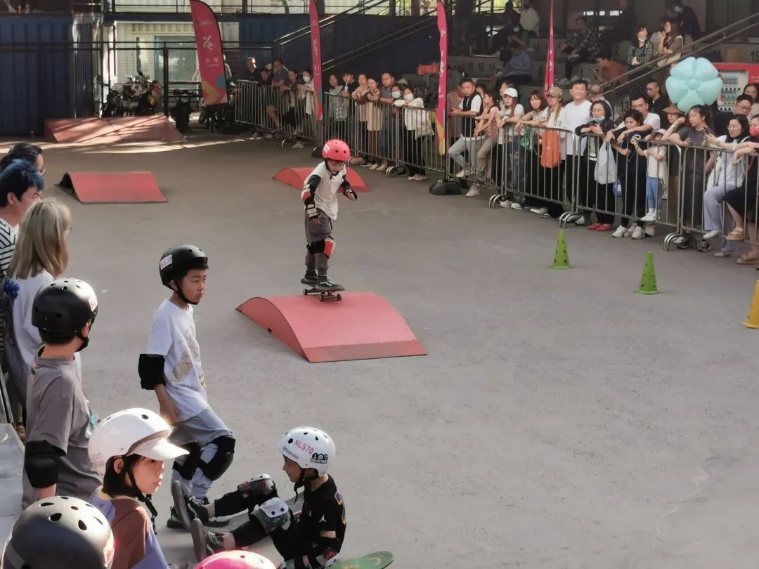 比赛进行了一天,宝山1号湾桥下空间的喏哩滑板公园聚拢了旺盛的人气,参加滑板比赛的小运动员成为全天最受瞩目的主角,家长、教练和小伙伴则不遗余力为他们加油鼓劲,让他们在竞争中展现出技艺,释放出能量。