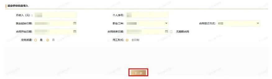 在“就业参保信息录入”选项卡中录入“月收入”、“个人序号”和其他劳动就业相关信息。