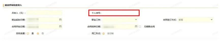 “个人序号”为在职人员的顺序号,默认编号规则为单位当前最大序号+1;单位若有个性化编号需求的,可以自行填写,但不得重号。