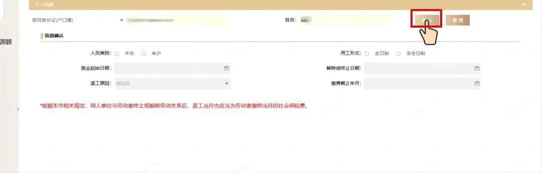 输入需办理人员的身份证号和姓名,点击“确认”,系统将自动读取办理人员最近一次的招工信息。