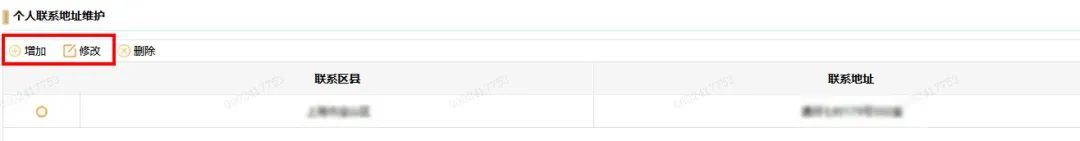 修改联系地址:点选默认的联系地址,点击“修改”(无默认联系地址的,可直接点击“新增”)。