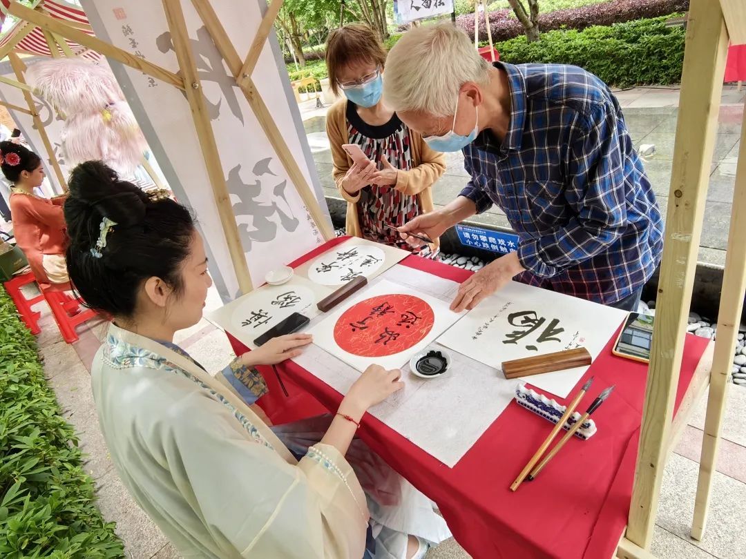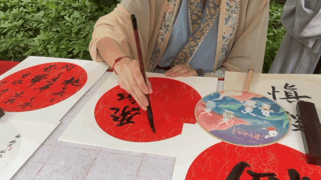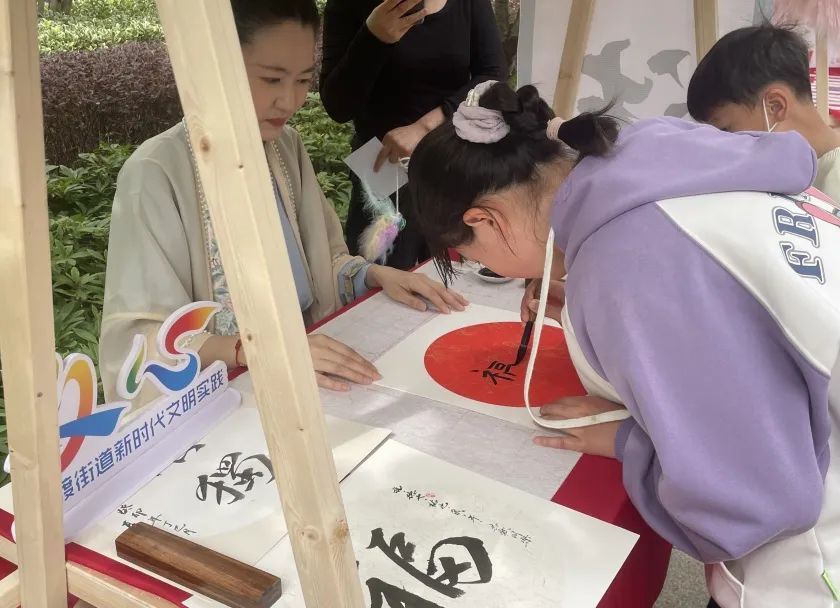 大家在砚纸上挥毫泼墨,在春日暖阳中,感受传统文化魅力,写上自己的祝福。