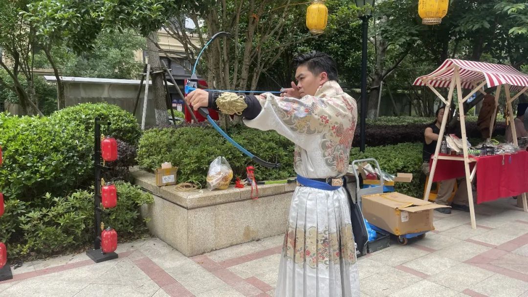 身着古风服装,屏息凝神、眼神专注,呼吸与轻风同频,一静一动之间,让心灵得到放松。