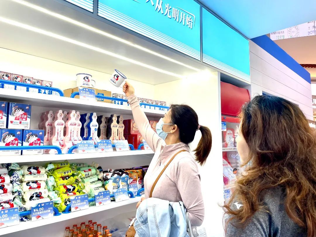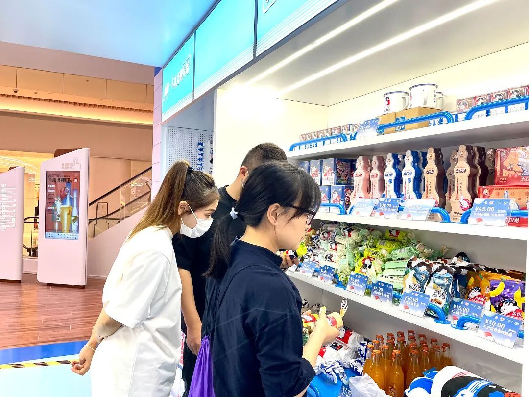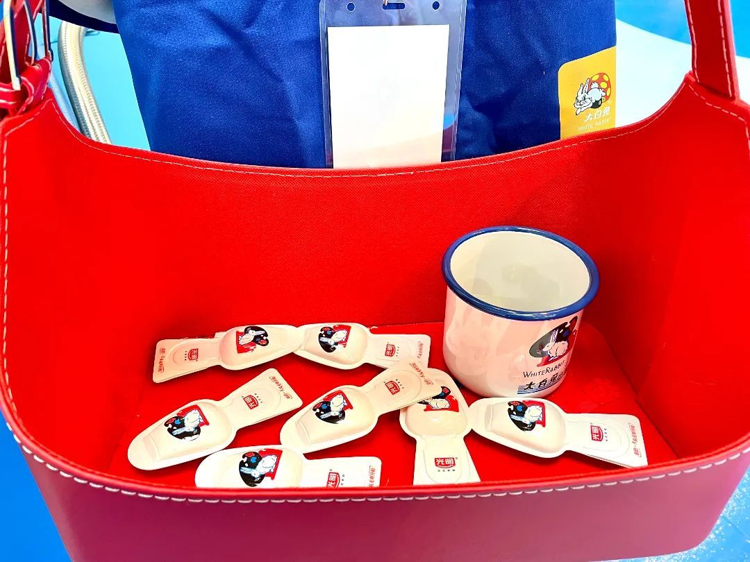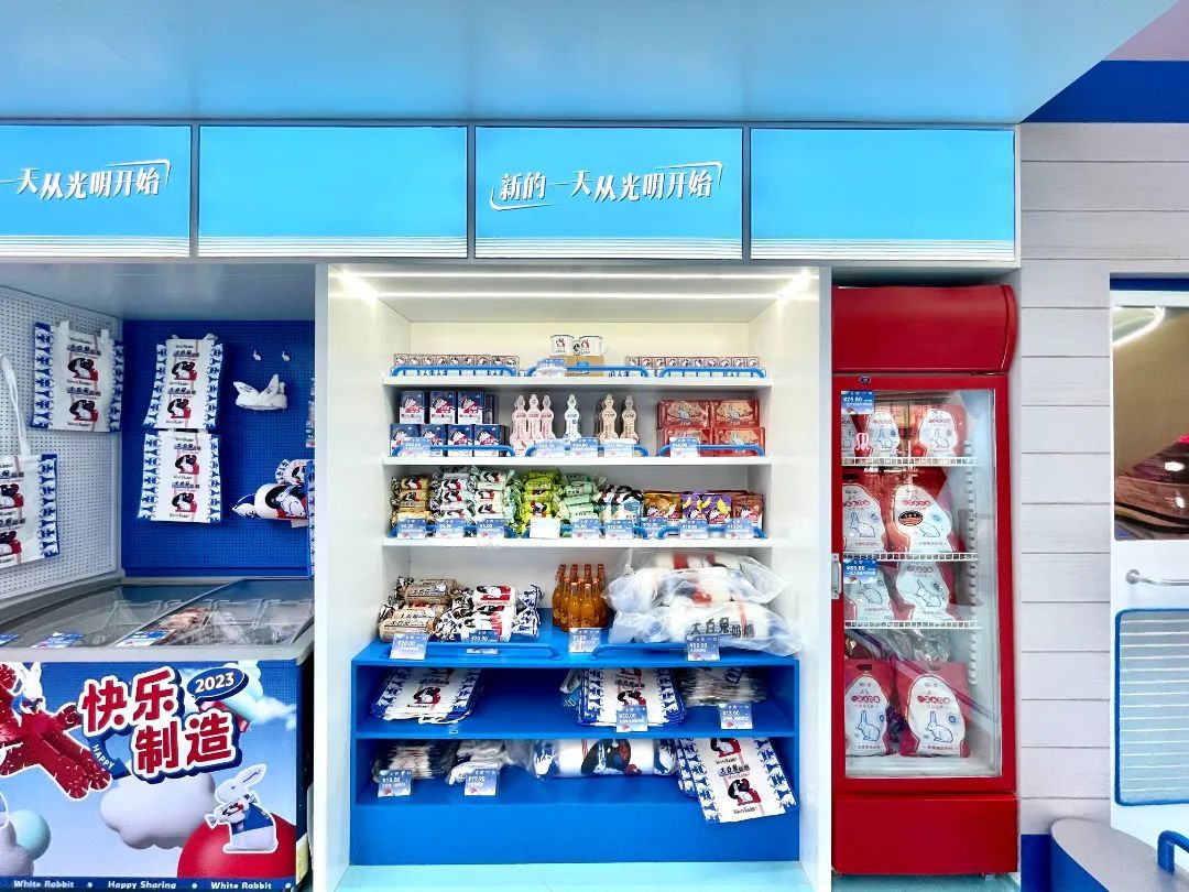 快闪现场除了跨界新品还有各种大白兔周边,口味丰富的大白兔奶糖、大白兔冰箱贴、大白兔手提袋、大白兔搪瓷杯、大白兔抱枕……为消费者带来从身心到唇齿的快乐与甜蜜。