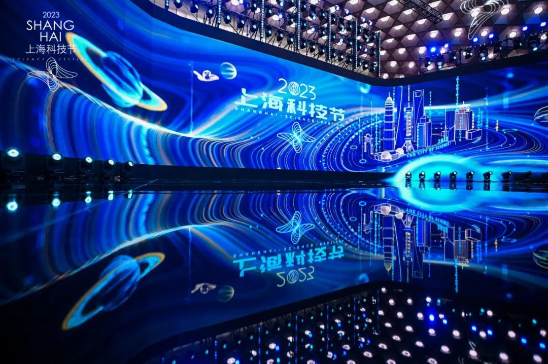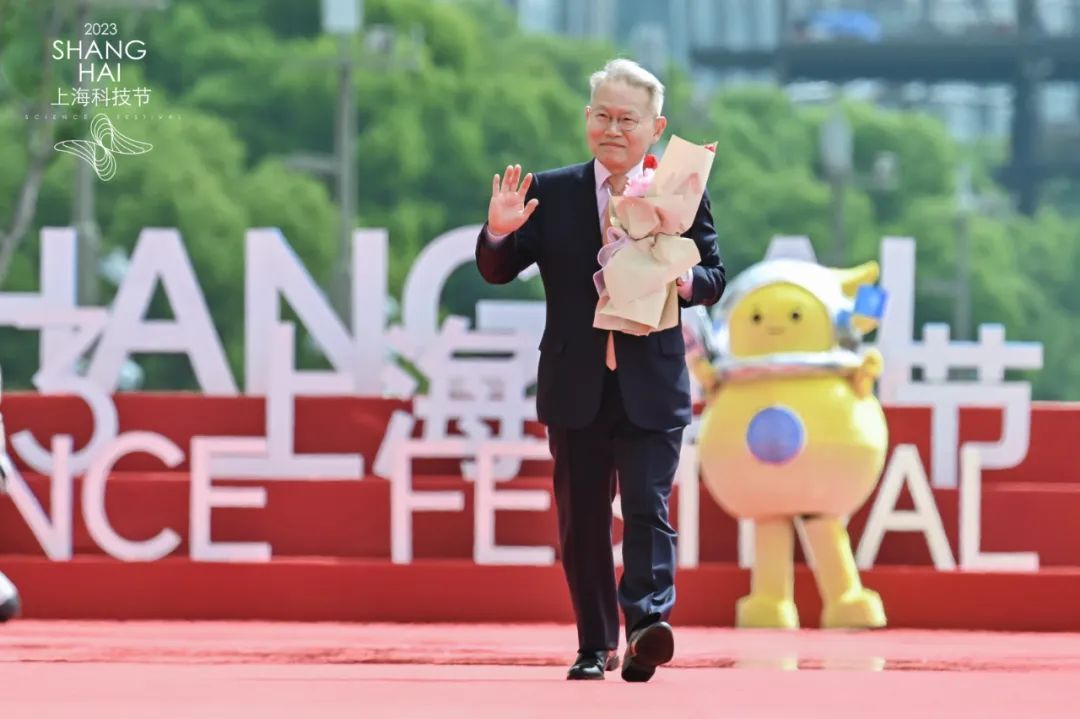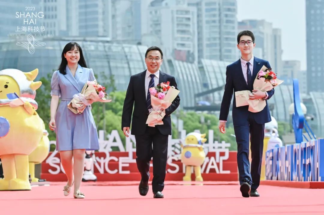 姜语宸与中国科学院院士、中科院上海药物所研究员陈凯先、曹杨二中学生郭家晔共同启动2023上海科技节。