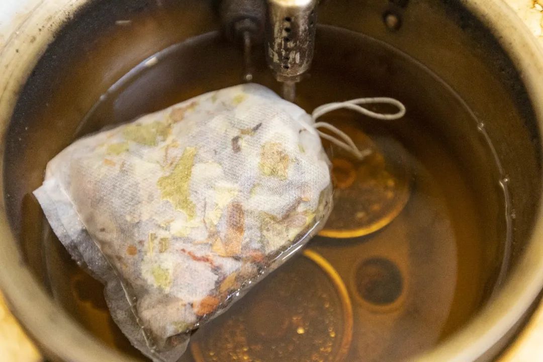 鲍医生将两大包中药放入中药熏蒸治疗器中,并将温度调节到合适的档位,随后打开中药熏蒸仪,待药液煮沸后,从仪器中喷射出的药物离子能有效渗透至患处,起到疏通经络、促进气血循环、缓解疼痛的作用。