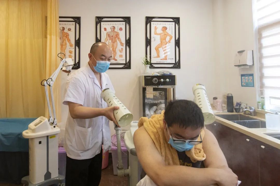 鲍海峰医生还展示了推拿、艾灸等,“夏季的话,中药熏蒸、艾灸、推拿等都是很受老百姓青睐的,像中药熏蒸能起到疏通经络、促进气血循环、缓解疼痛的作用。艾灸则可以温通气血、扶正祛邪、调整平衡,以达到防治疾病目的的方法。做中医治疗,对提高机体免疫机能是有一定帮助的。”