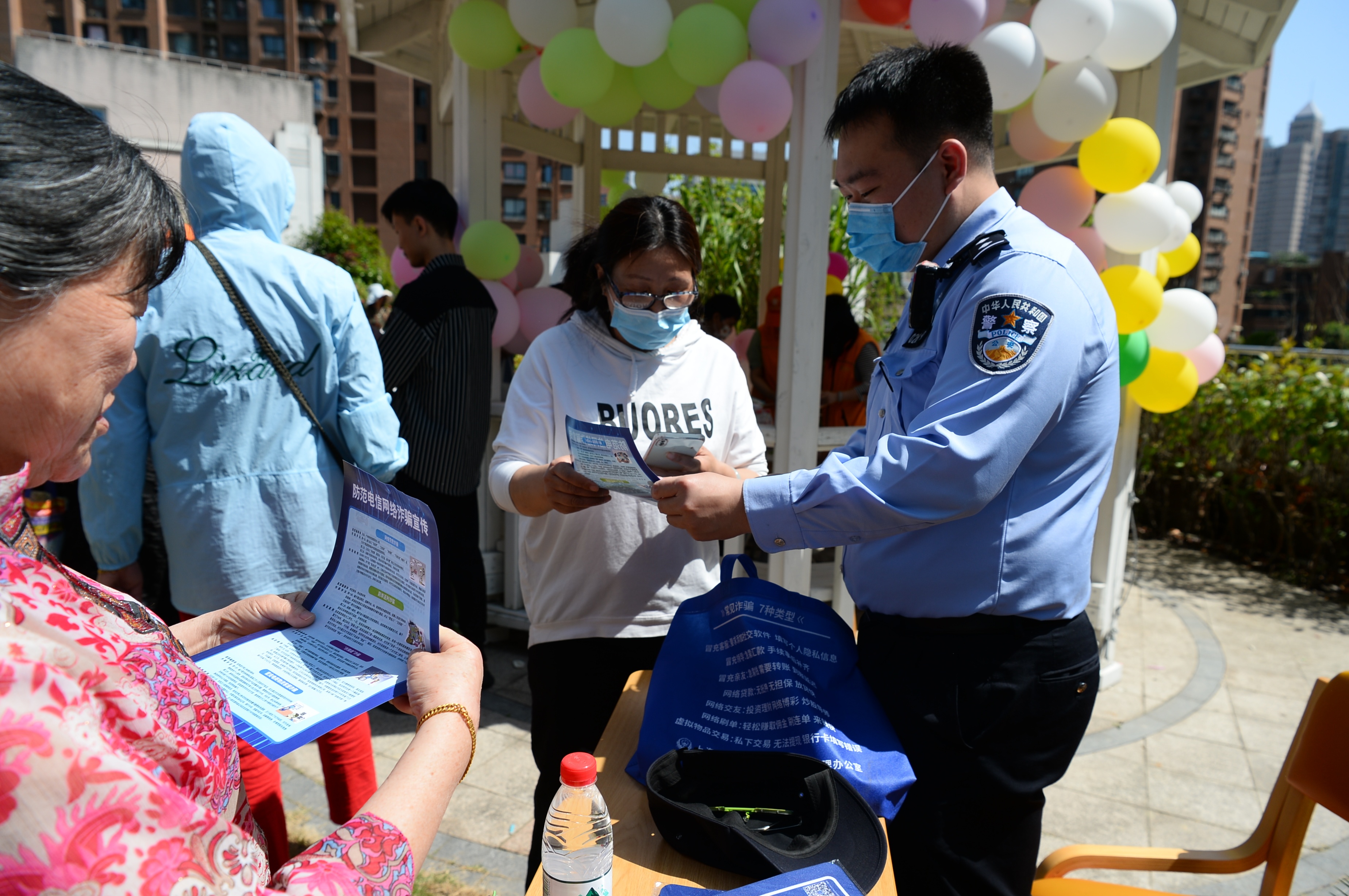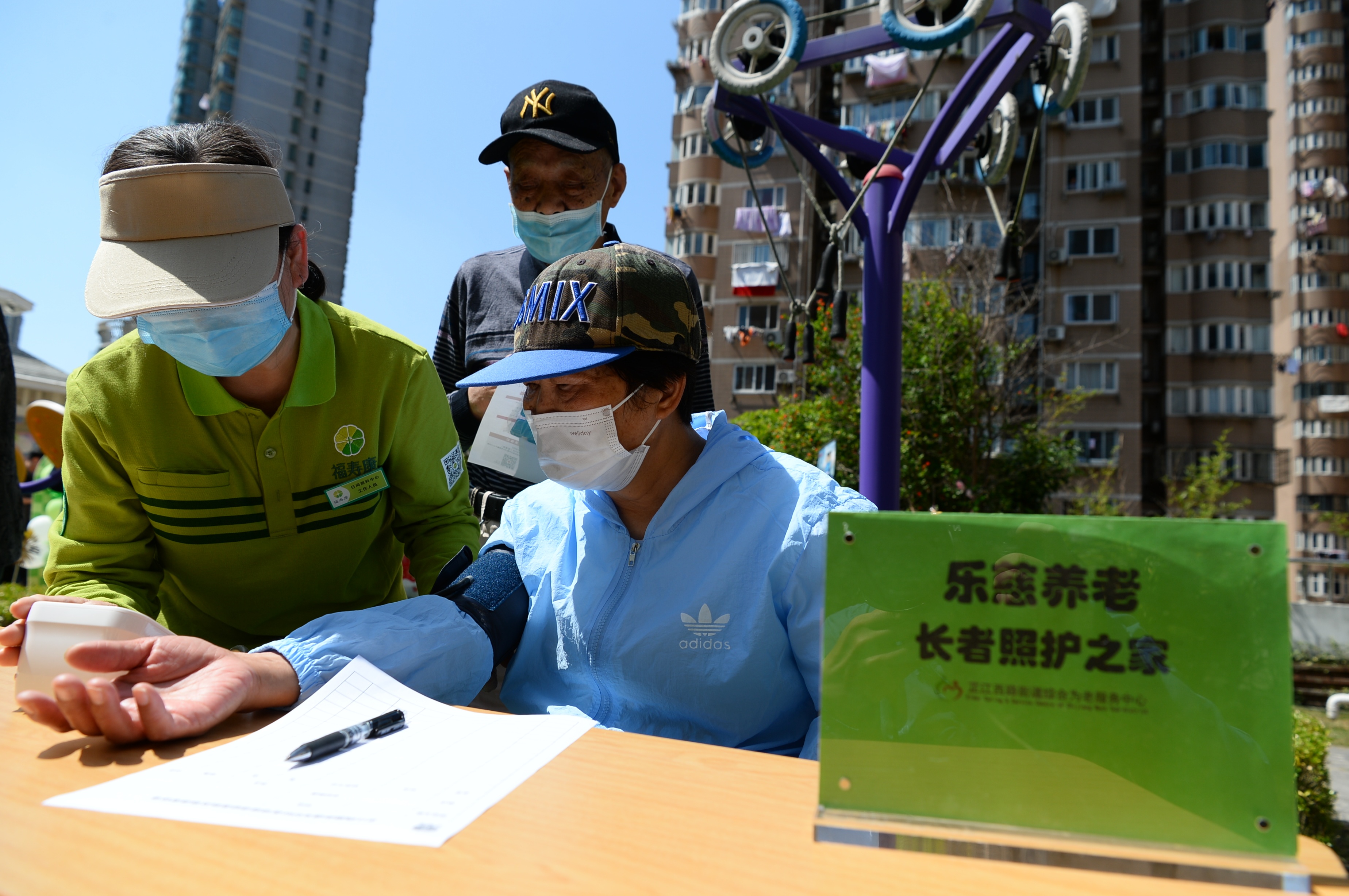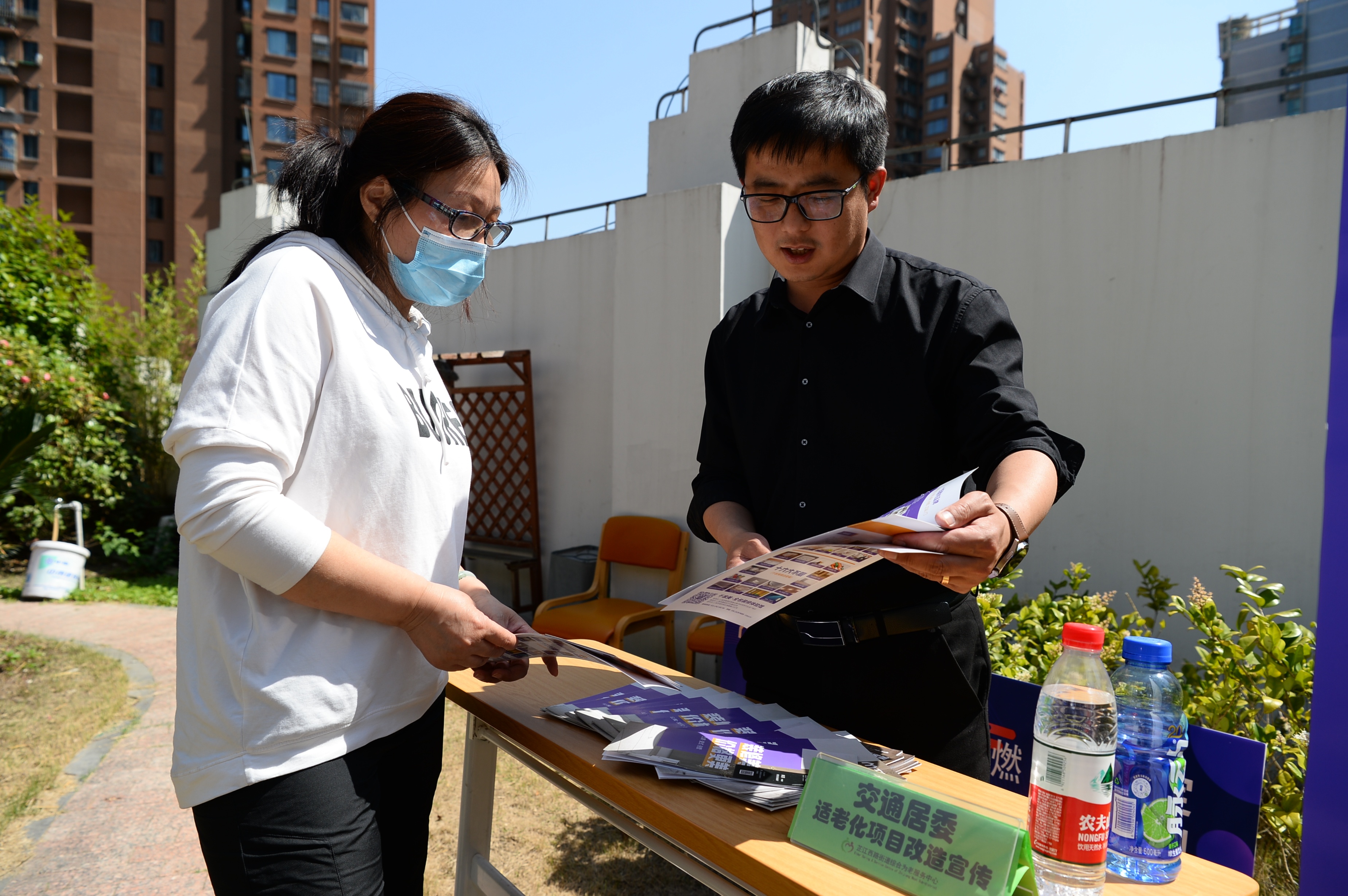 在芷江西路综合为老服务中心3楼的天台花园上,15个公益服务点位依次摆开,提供多项志愿服务,主要包括老年协会的助老服务项目推介、街道社区卫生服务中心的健康义诊、乐慈养老的老年课堂、乐慈爱老的长者照护之家、居委适老化改造介绍、静安区随身办市民云、居家养老的政策咨询和车轮助餐、雅冠林口腔义诊、福寿康日间照料中心、建社家的老年人健康咨询、老年人意外险咨询等。