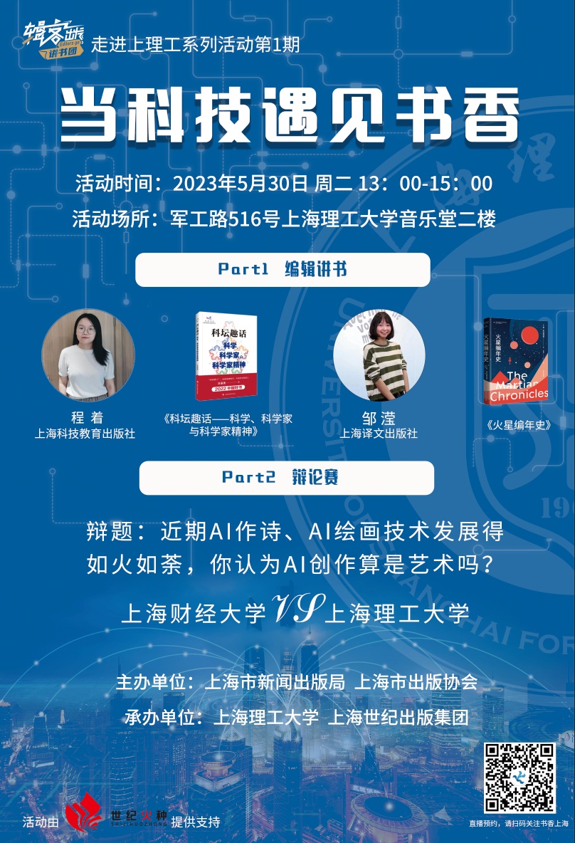 快来参加“辑客出发”讲书团走进上理工系列活动之“当科技遇见书香”!