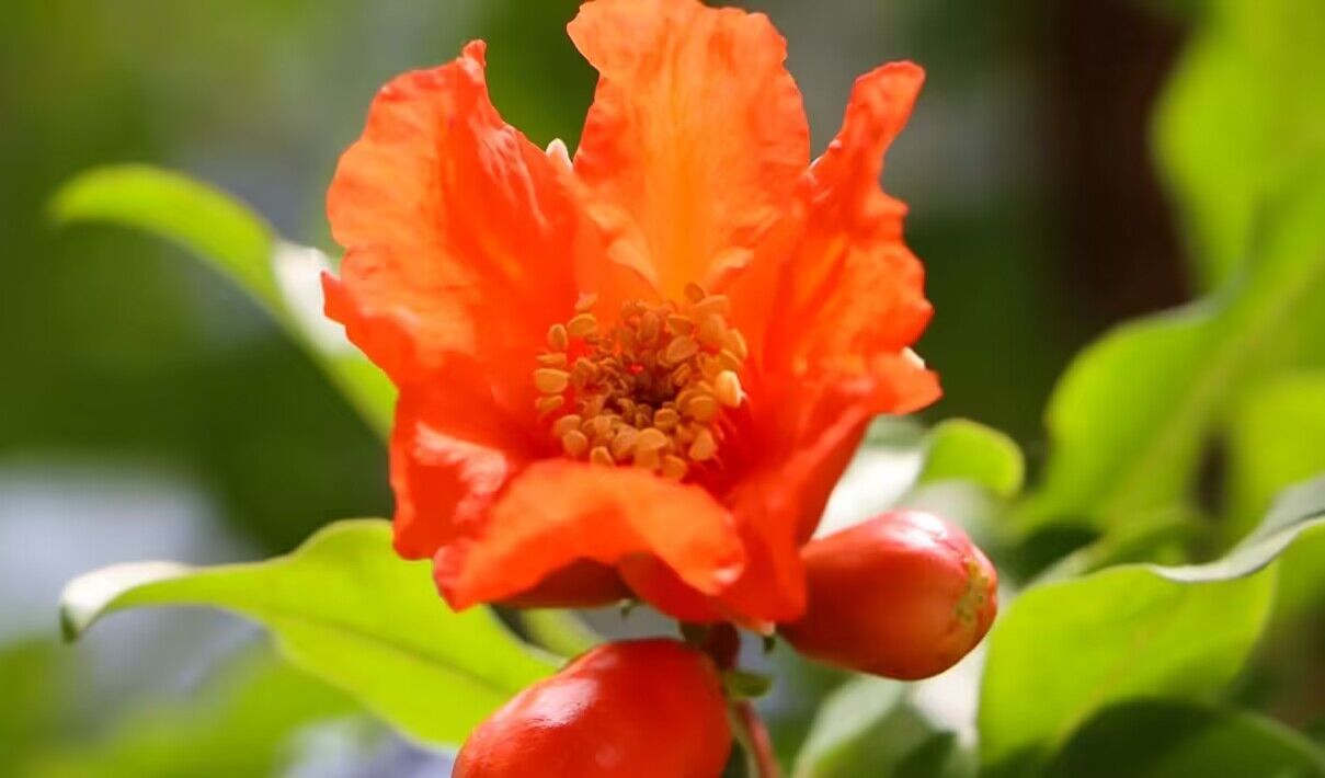 眼下,济南城中正是石榴花开的季节。艳红的石榴花是中国北方每年仲夏时节最美的花朵,石榴果更是中国民俗中的吉祥果,代表着多子多福,团结和睦,幸福美满之意。(大众日报客户端记者 武宗义 报道)