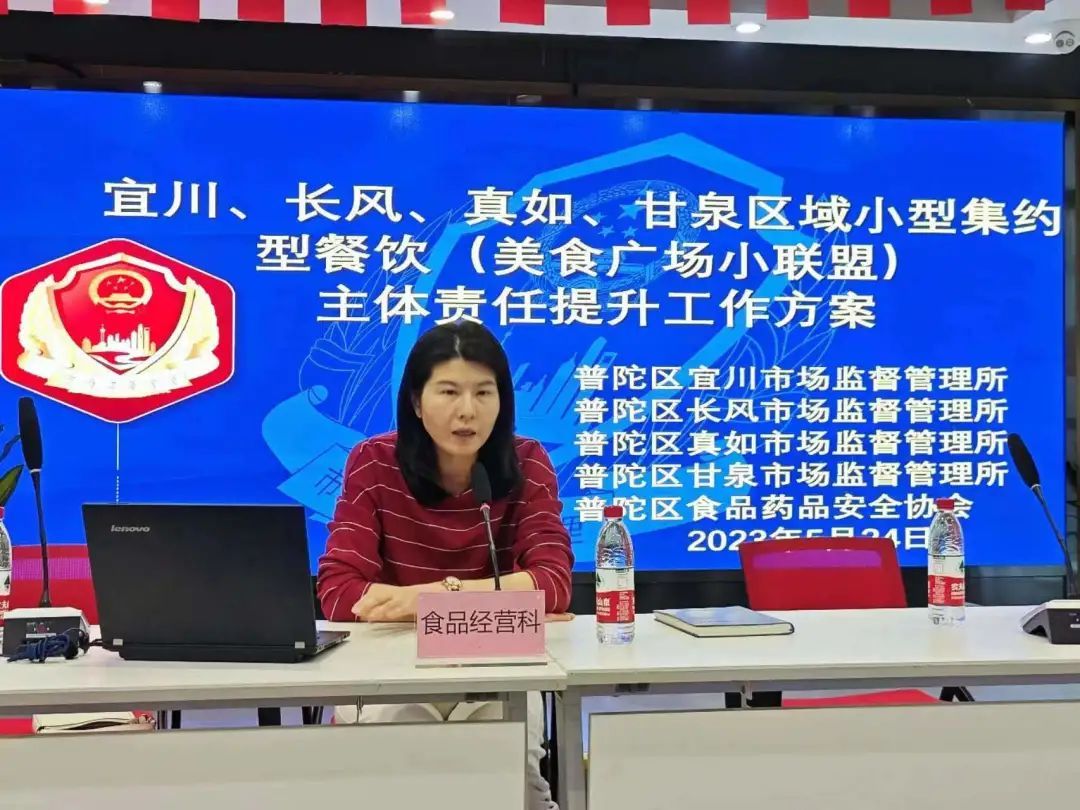 5月24日下午,在区市场局食品经营科指导及宜川街道食药安办大力支持下,宜川、长风、真如以及甘泉市场所以辖区内部分小型集约型餐饮(美食广场)为切入点,组织开展主体责任提升培训及宣讲工作,进一步推动网络餐饮服务综合治理走深、走实。