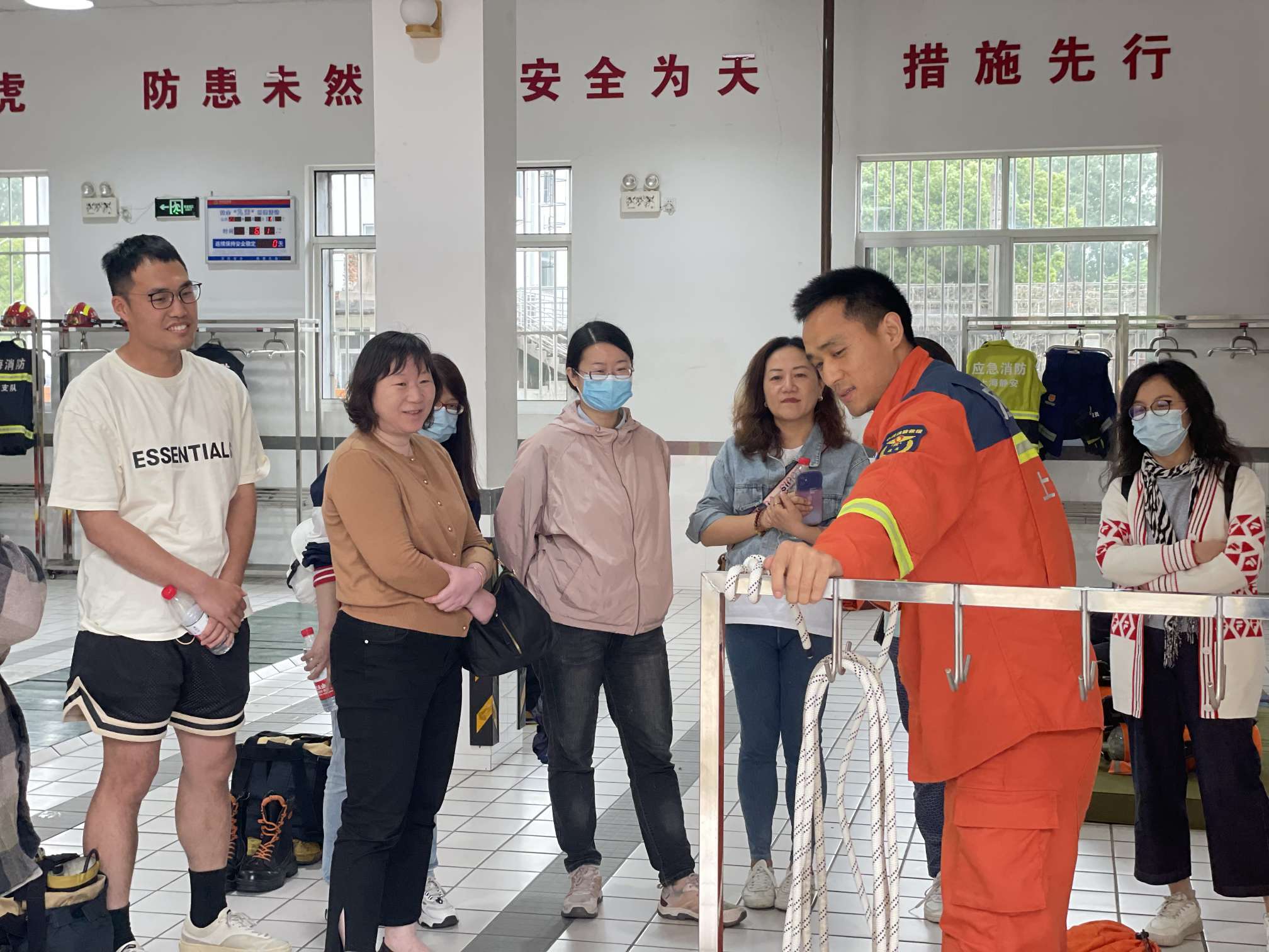 5月24日上午,在恒丰消防救援站,消防员向辖区初中学校的副校长展开了消防安全知识、应急逃生技能等内容的宣讲。从干粉灭火器、泡沫灭火器的适用场景,到常见火灾排查处置的介绍,从常用绳结打法、防烟面罩佩戴、逃生锤等设备的使用,到疏散逃生的要领,副校长们以“学生”的身份沉浸式体验了消防安全实景教育,对中学生实训课程有了更深的了解。
