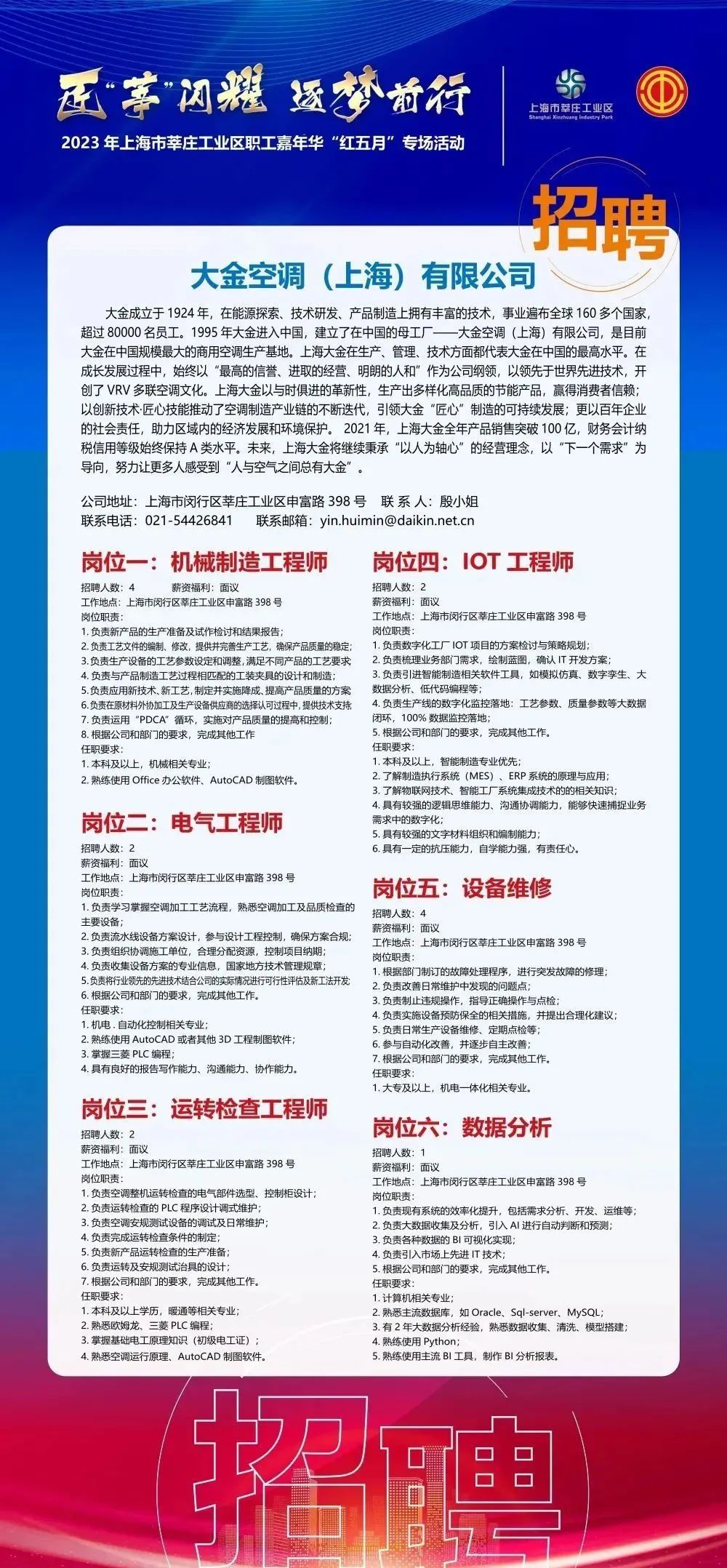 为帮助更多求职者了解相关招聘信息,莘庄工业区总工会还将岗位带到线上。快来看看有哪些适合你的岗位吧——