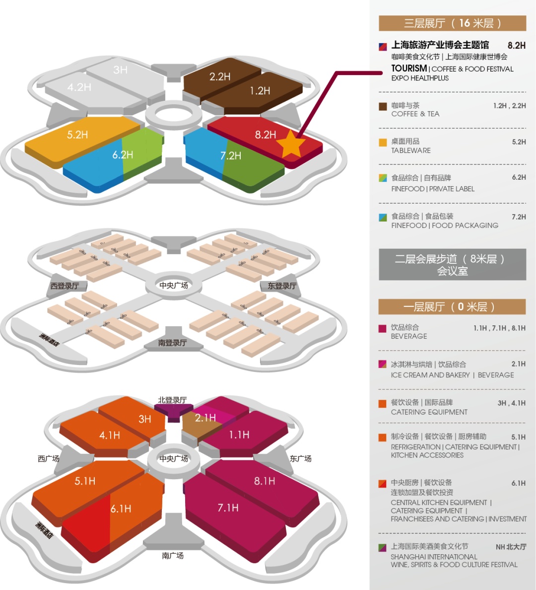 集群展名称:上海旅游产业博览会主题馆,HOTELEX上海国际酒店及餐饮业博览会;上海国际健康世博会,上海国际连锁加盟展