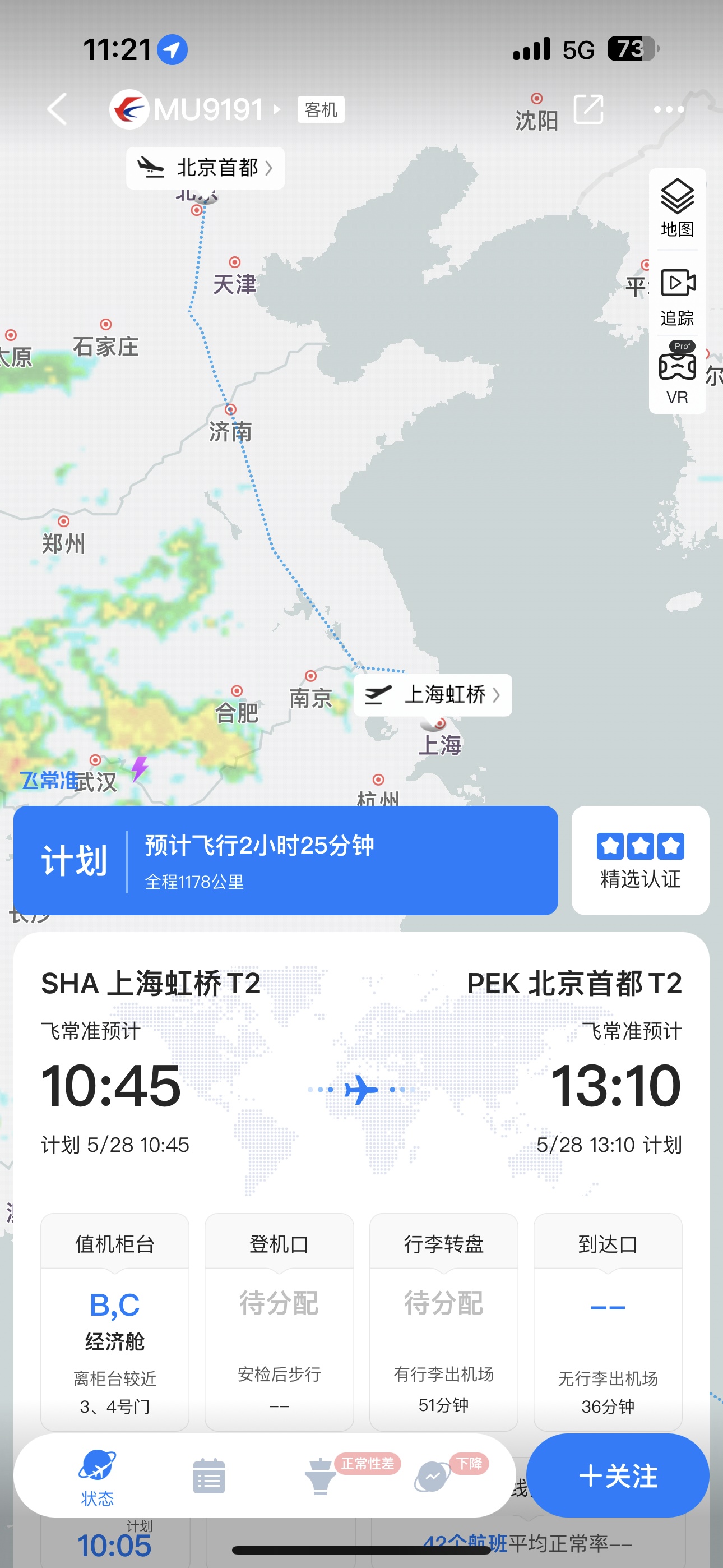 交汇点讯 5月26日,新华日报·交汇点记者从飞常准APP获悉,国产大型客机东航C919首个商业航班飞行计划公布,时间为5月28日,班次为MU9191上海虹桥-北京首都,MU9192北京首都-上海虹桥,计划飞行时长2小时25分钟。