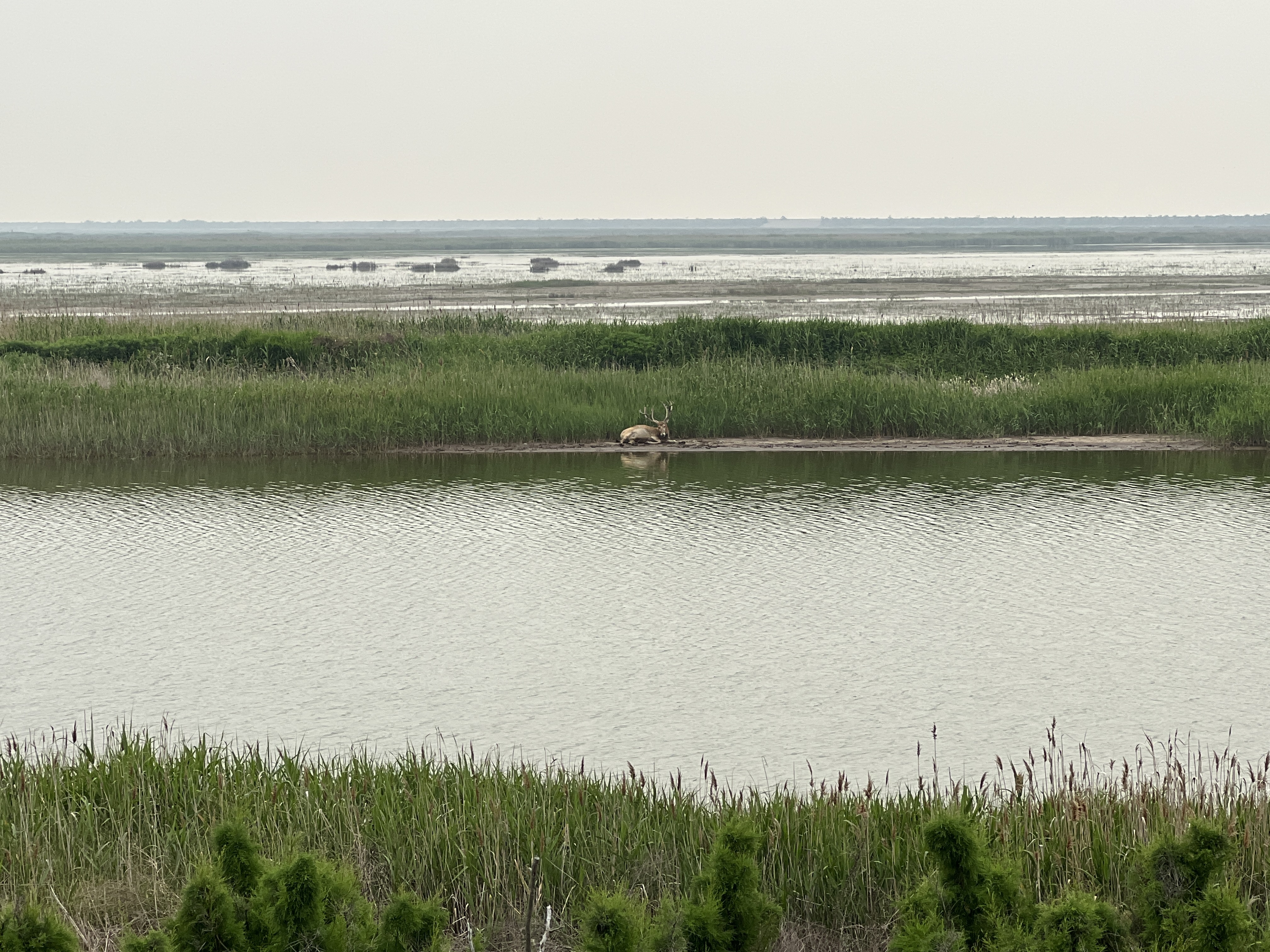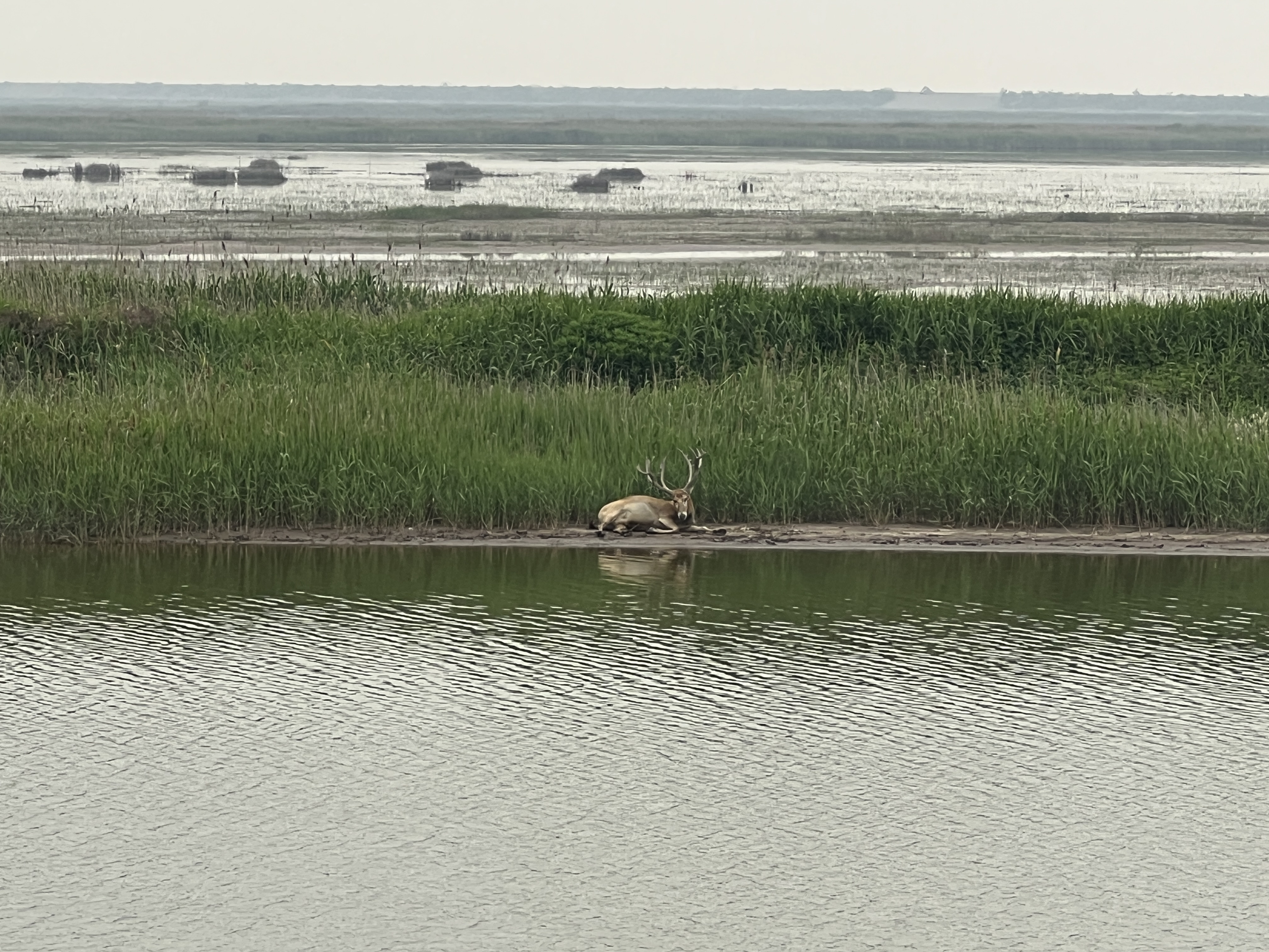 5月12日在东滩自然保护区拍摄到的麋鹿