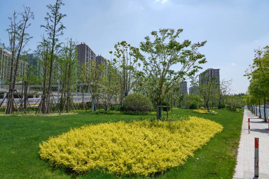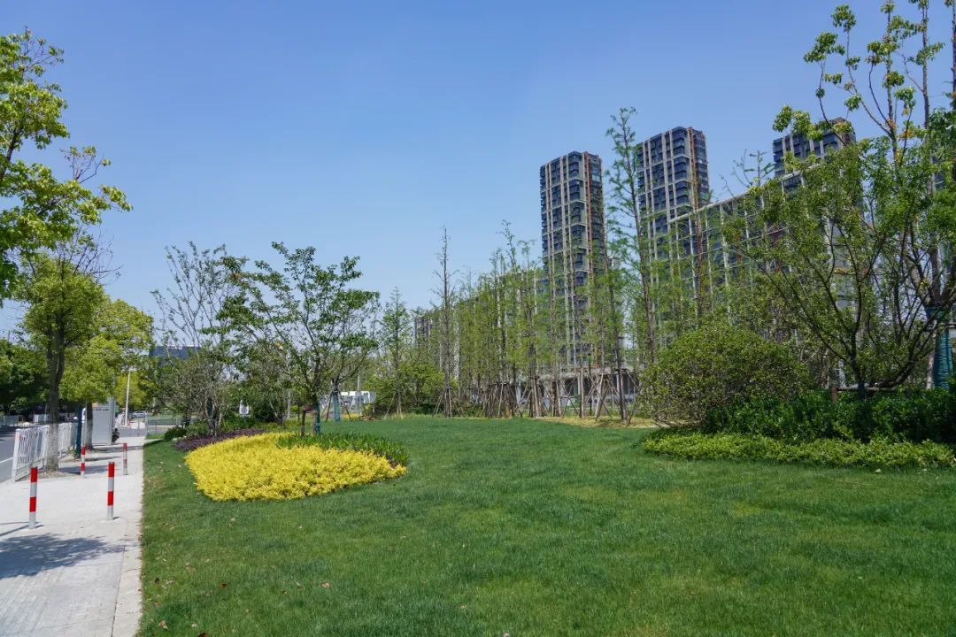 “目前绿化这块基本完工了,我们通过不同植物群落的种植形成四季变化,像观叶类杉树就种植了池杉、水杉、落羽杉等品种,观花类有绣球、金丝桃、杜鹃、栀子花、鼠尾草等不同季节花型的植物,以丰富色彩营造四季的缤纷。”徐泾镇规建办工作人员朱洁向记者介绍,滨河绿地位于天空之城南侧,即:诸陆西路(徐盈路-徐乐路)路段沿线,其中绿地率达到了72.5%。滨河绿地的整体设计以“聚焦开放空间、满足全龄活动、生态亲水”为主题,营造滨水绿湾、乐活天地、水杉密林和野趣花园等景观空间,并合理利用河、岸元素,将步道、桥梁、河岸等串联形成环线,打造“社区绿廊”。