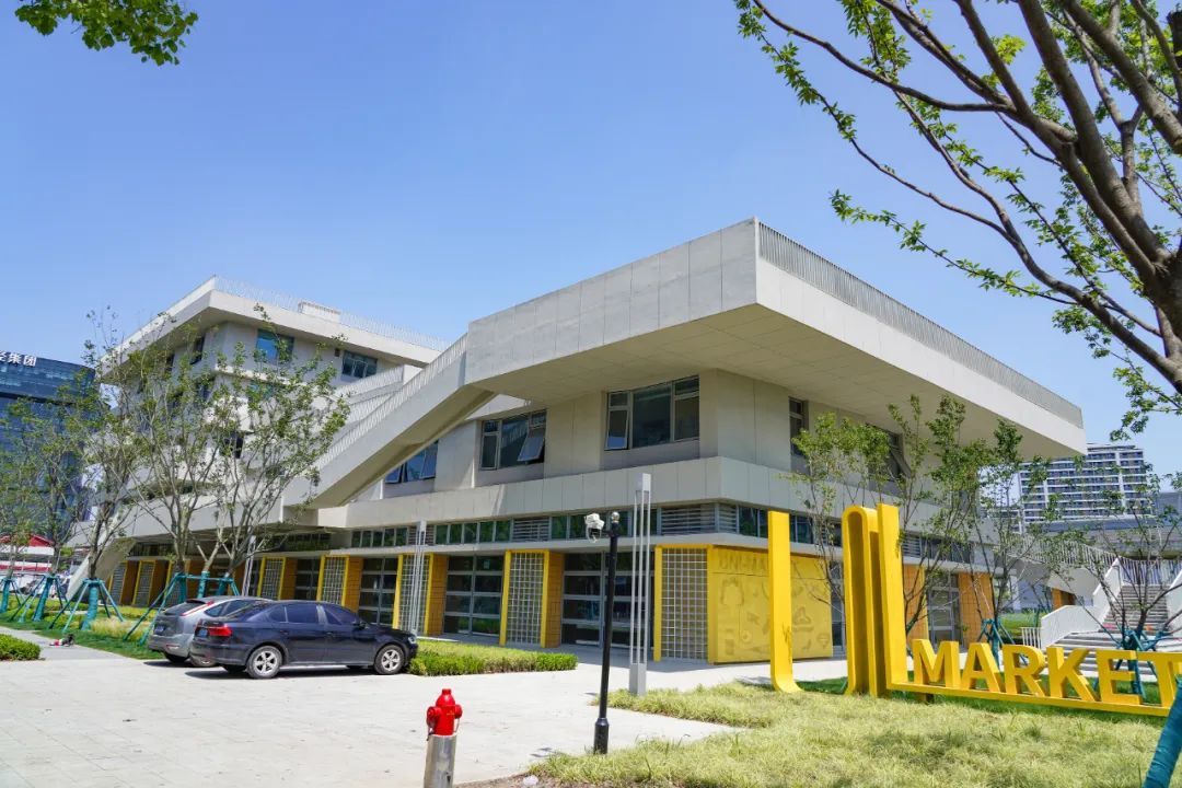 值得一提的是,滨河绿地西侧还建设了公建配套设施——徐盈路西侧菜场(暂命名),占地面积为4964平方米,建筑面积为5384平方米,主要功能定位是社区菜场和为老服务中心,目前施工建设进入收尾阶段,后续会进入室内装修环节。该建筑的设计理念将屋顶作为“第五立面”充分融入景观效果,使用“水平性”空间及屋顶花园呼应城市周边环境,多层景观平台相互渗透、连接,营造丰富的共享社区体验空间。社区居民刘女士说:“我就是住在附近的居民,平常会带着小孩在这边散散步,附近河边、绿地景观都在建设中,小区邻居都很期待这片绿地早日完成建设。”