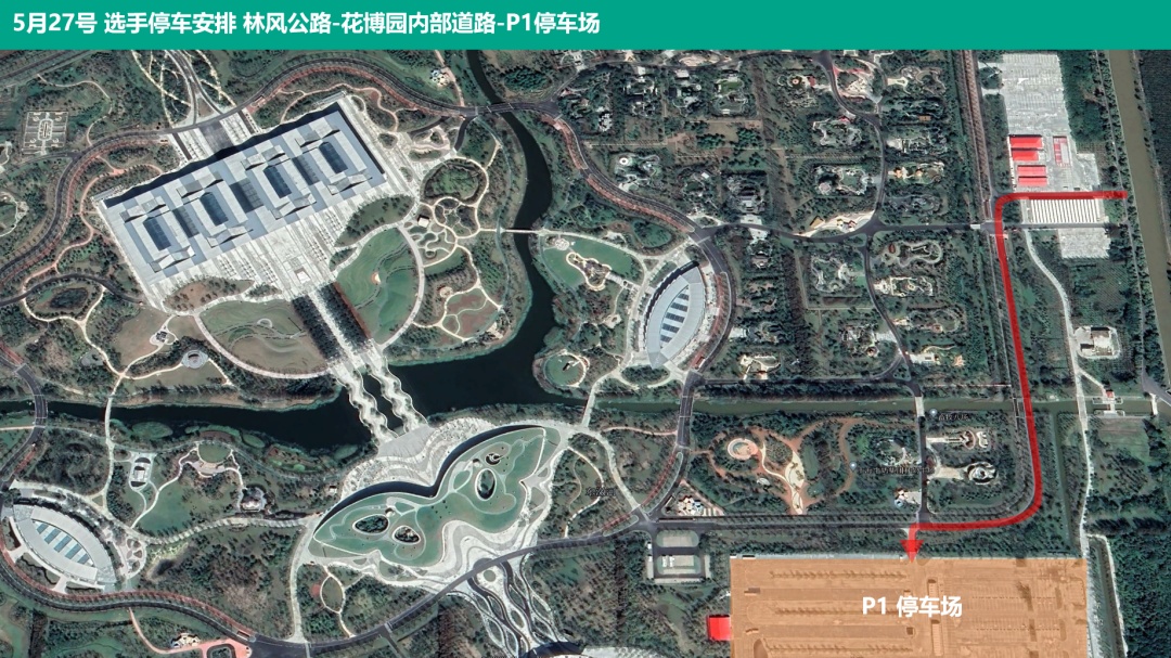 停P1停车场,骑行或步行进入签到区域