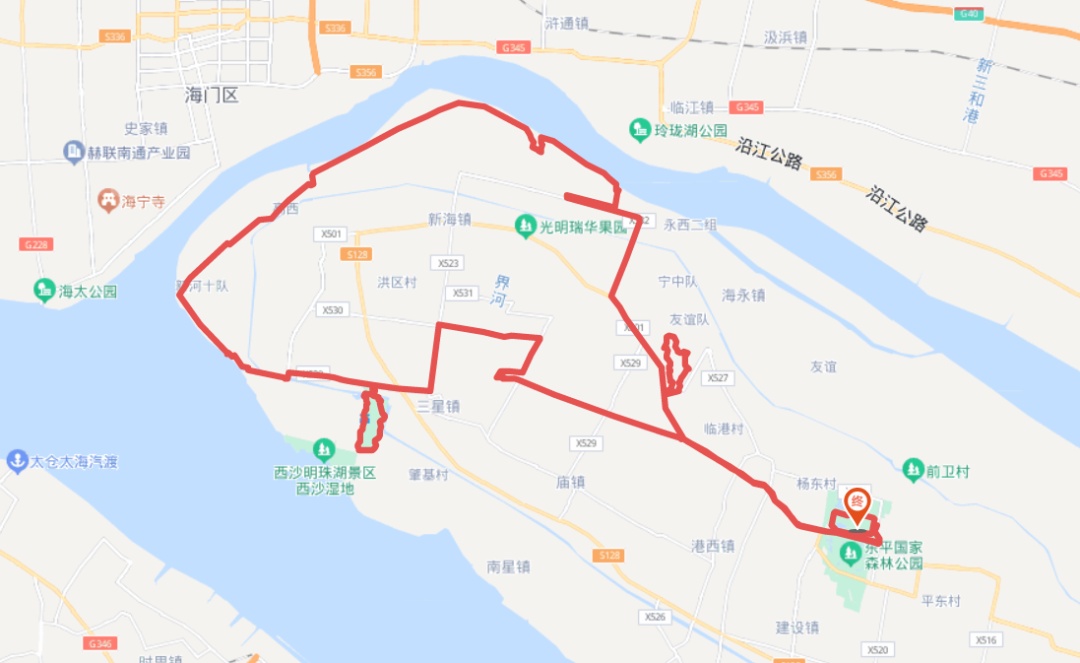 4.37 KM-40 KM处,稻·1968 补给点到崇明北滩位置,有多处小路及急弯,注意减速缓行;
