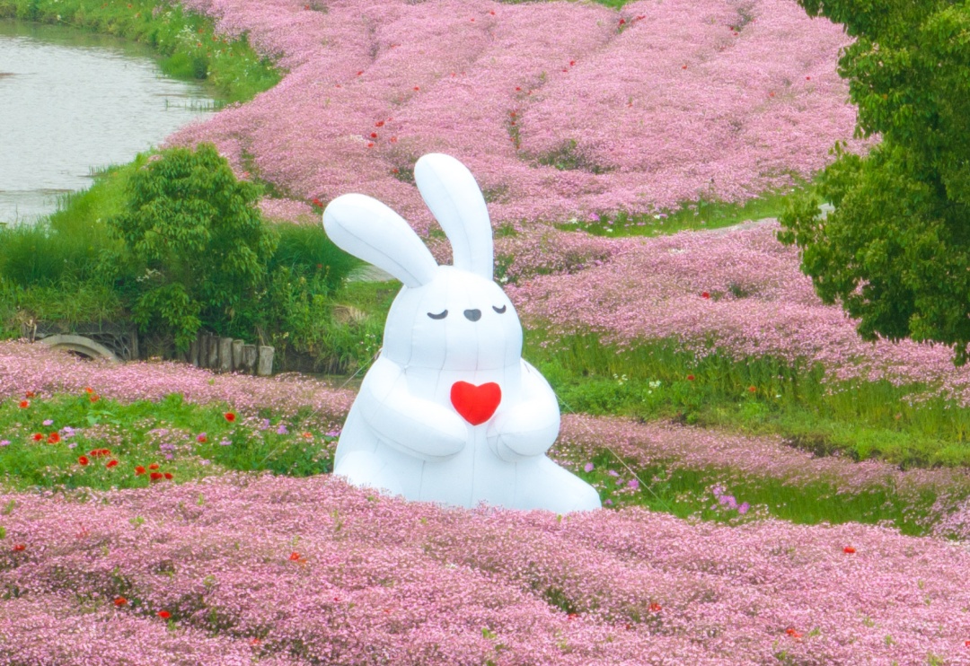 生态园内不只有色彩缤纷的花田,花间小径中更是用心设置了装置艺术。精致的欧式画框、造型各异的秋千架、软萌的大白兔正等待着大家来打卡。