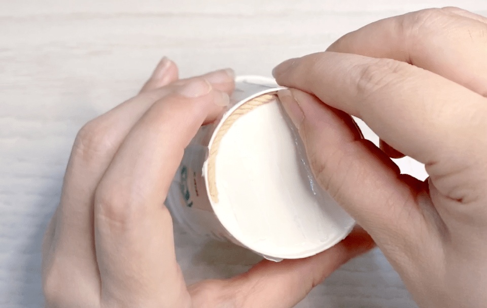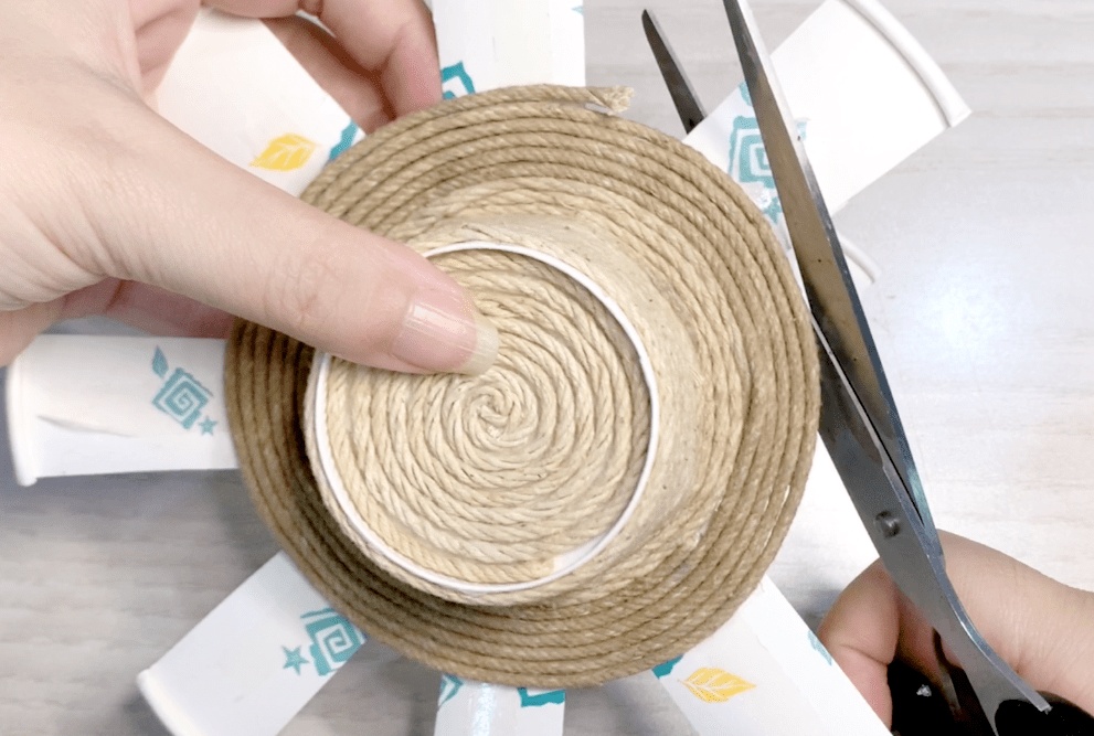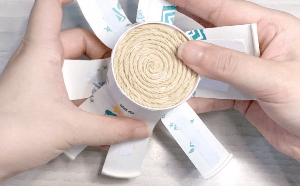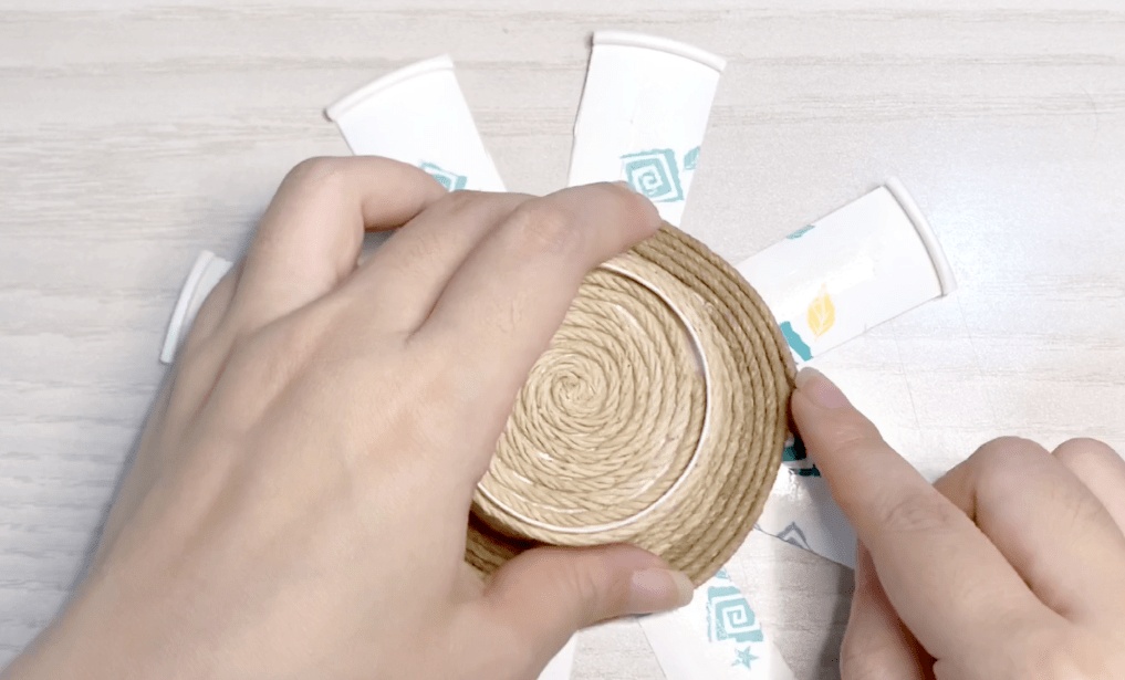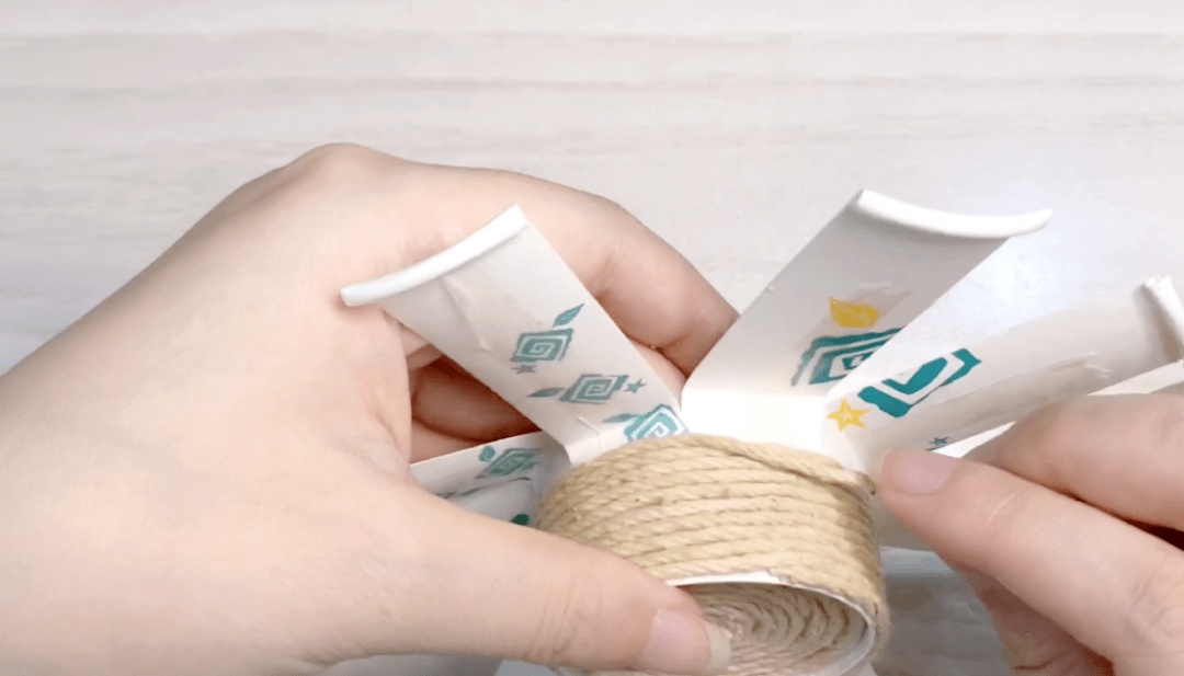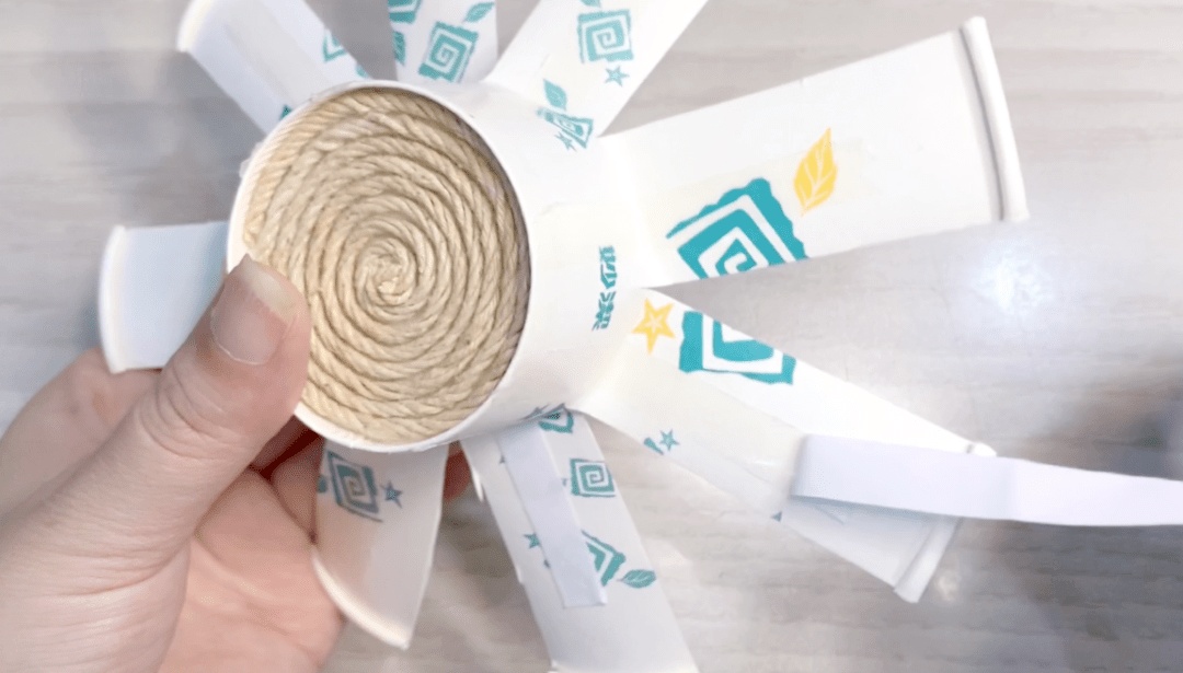 底部缠好后如下图,将杯身剪开处向外散开。