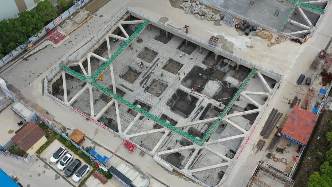 相关负责人表示:“底板浇筑还剩下最后一块了。后面将进行支撑的拆除,预计6月底可以出正负零(地面)。项目分为A、B、C楼。A楼和B楼是9层的钢结构建筑,C楼是一个连廊。”