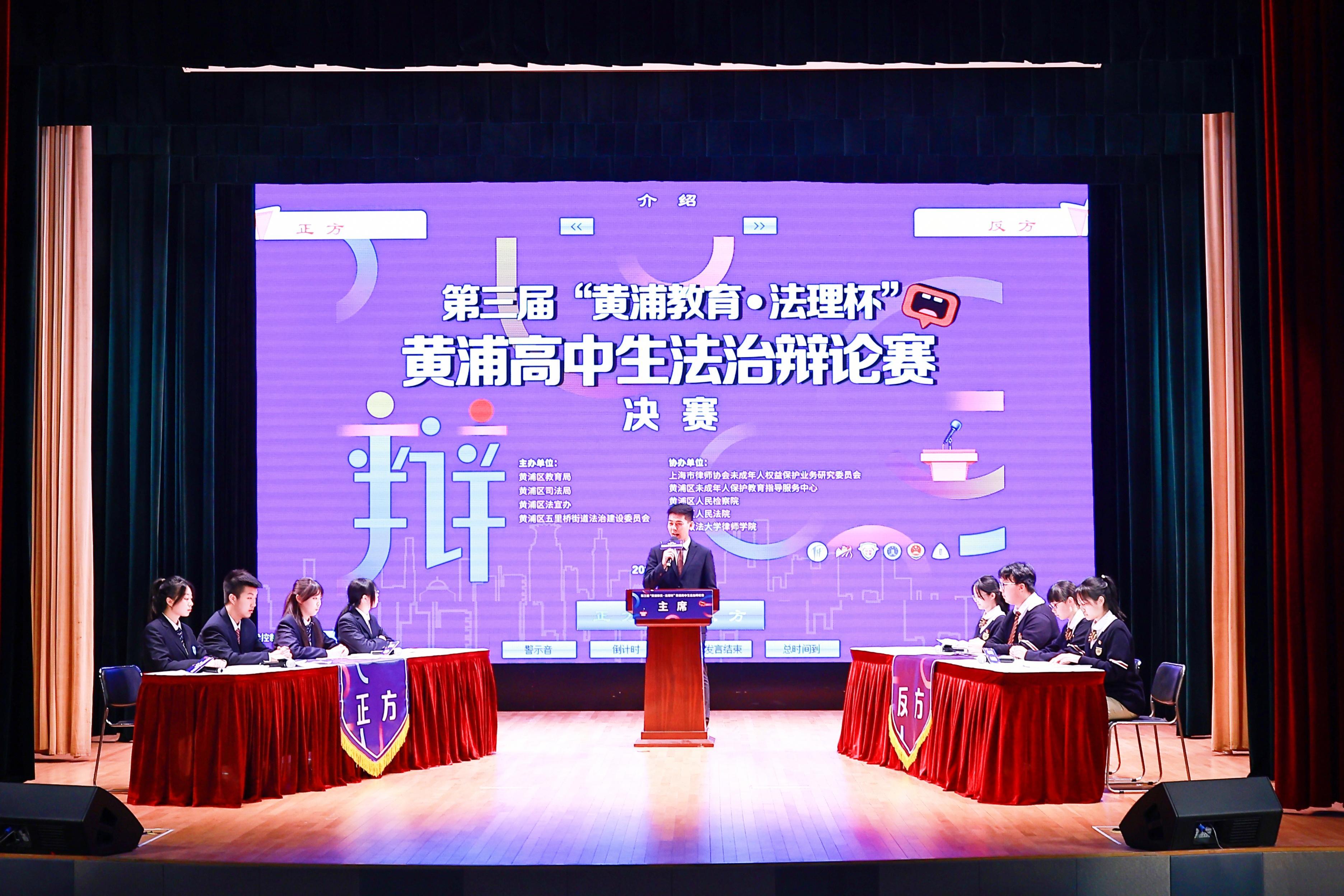 5月26日下午,第三届“黄浦教育·法理杯”高中生法治辩论赛决赛在五里桥街道社区文化活动中心举行。经过了初赛、复赛、半决赛的激烈角逐,脱颖而出杀入决赛的卢湾高级中学、上外附属大境中学两支辩论队在台上展开唇枪舌剑。市教委、区教育局、区法院、区检察院、五里桥街道党工委、市律师协会的负责人现场观摩了辩论赛。