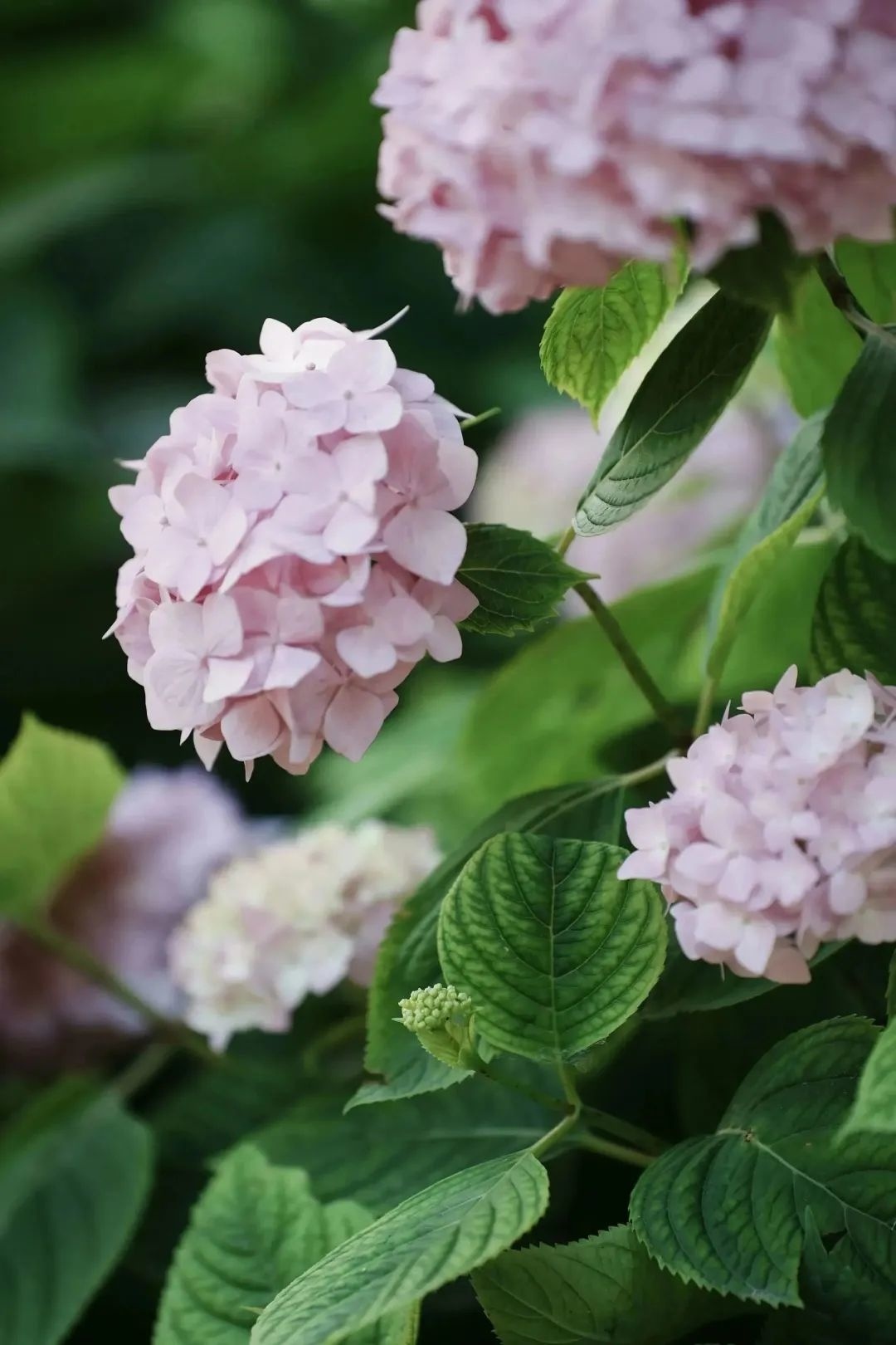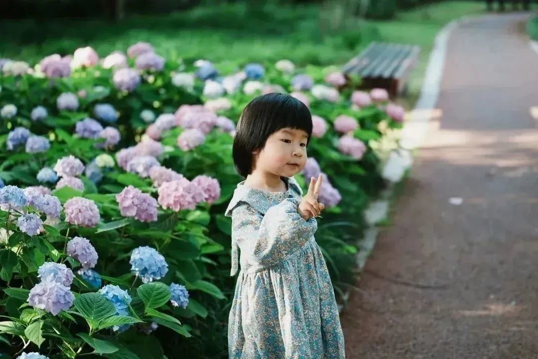 一阵风清风吹来,在微风中舞动的绣球花,宛如一个个腰肢翩翩的舞者,每一次轻盈的起舞都洋溢出芳香。