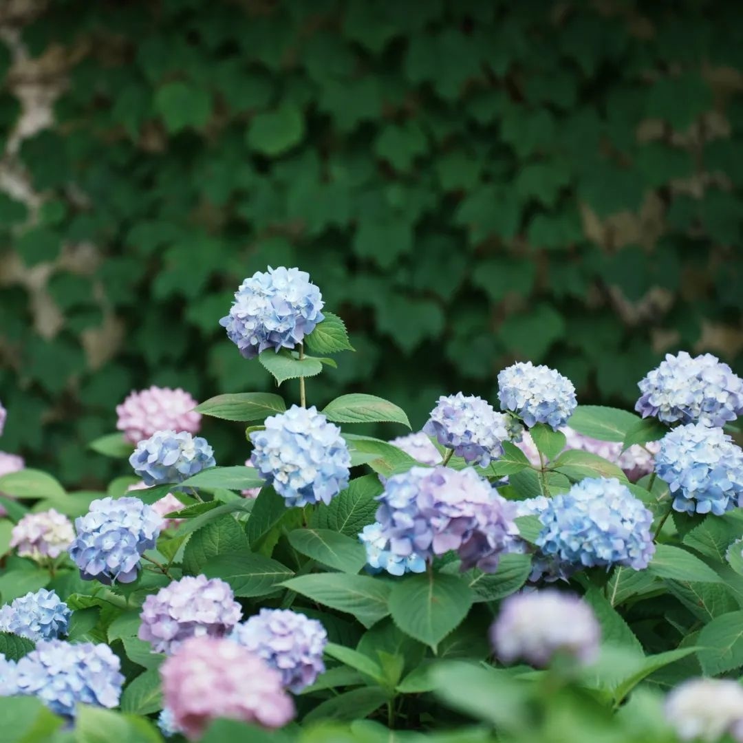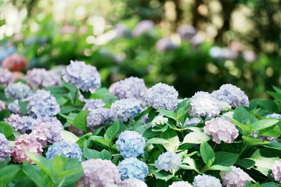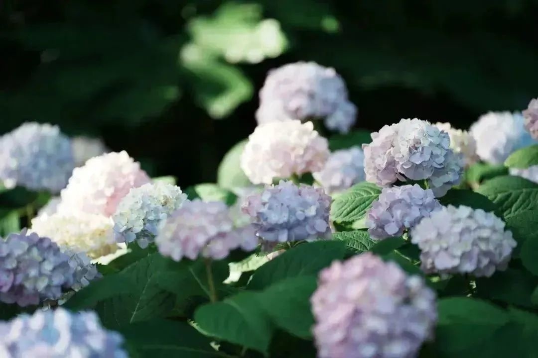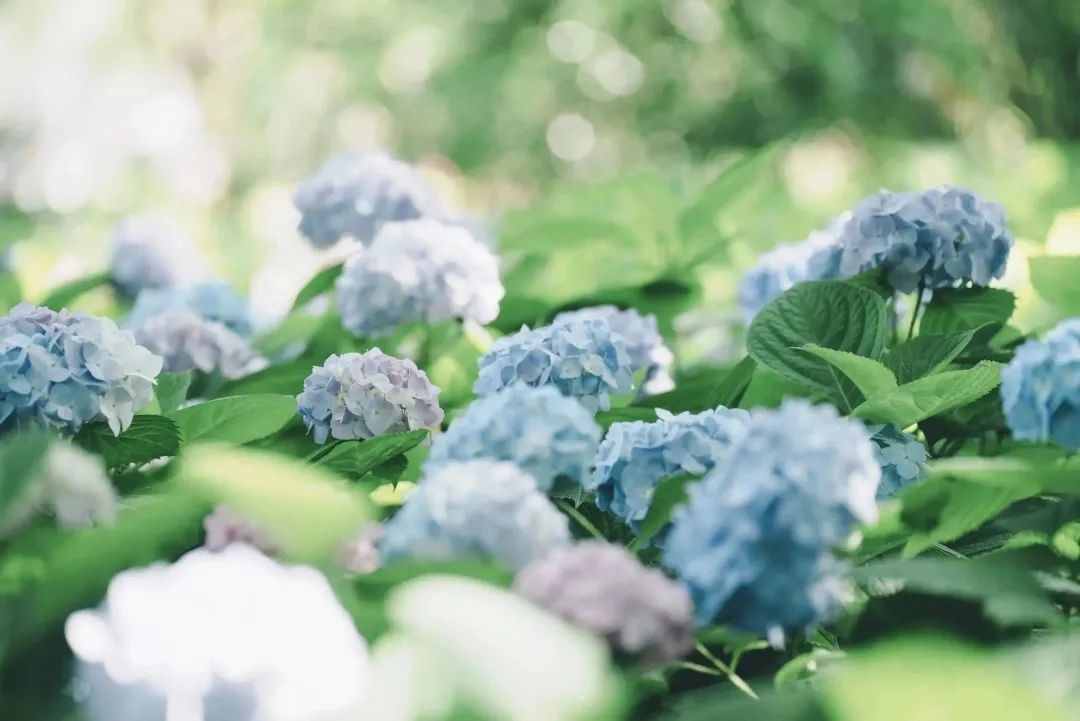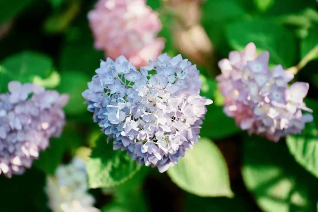 绣球花呈球形或半球形,花繁密至极,颜色如梦境般缥缈,像是从天堂中落下的一片柔软的云彩。有的又如同绣球般鲜艳耀眼,仿佛每一朵花都在诉说着属于它们的故事。