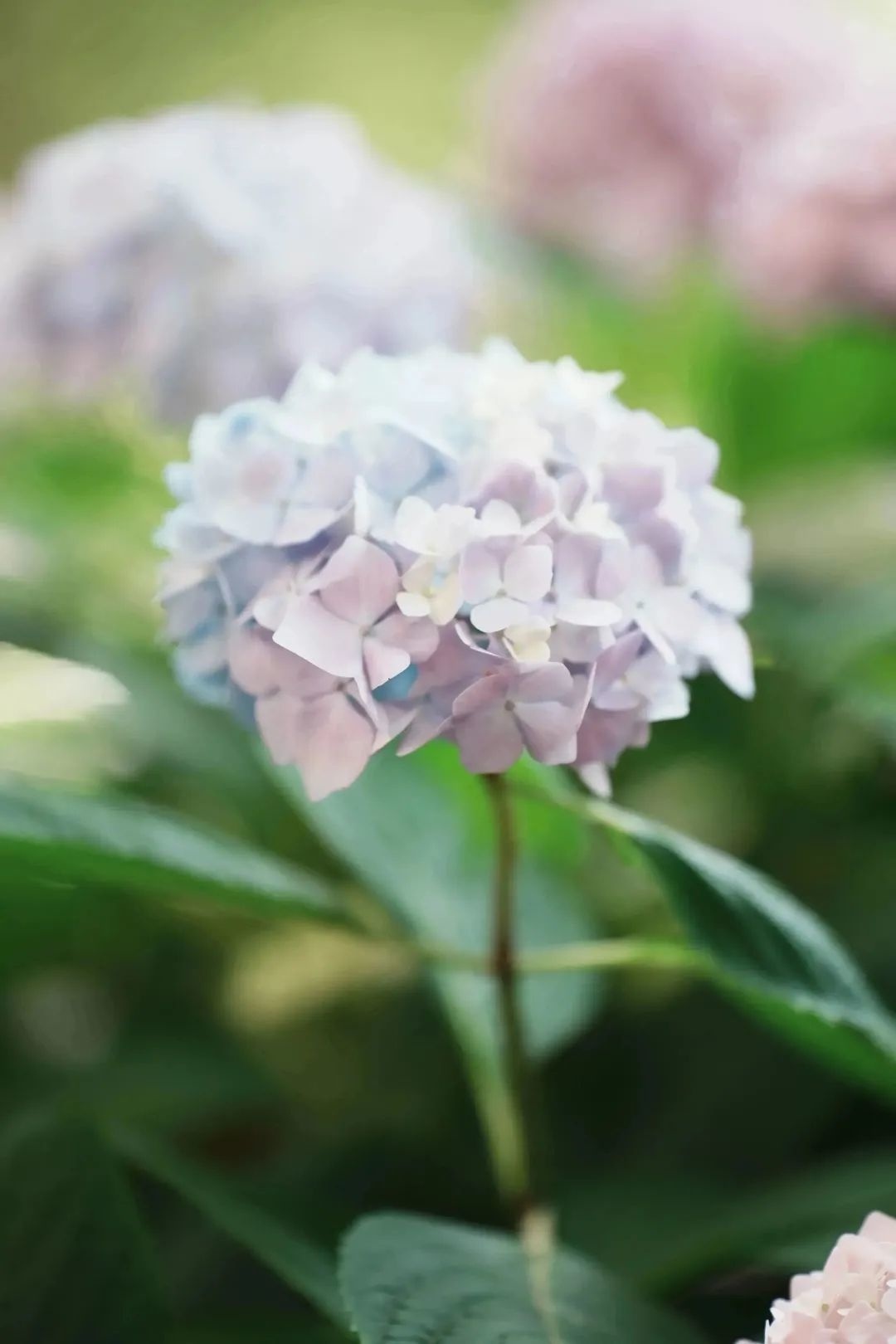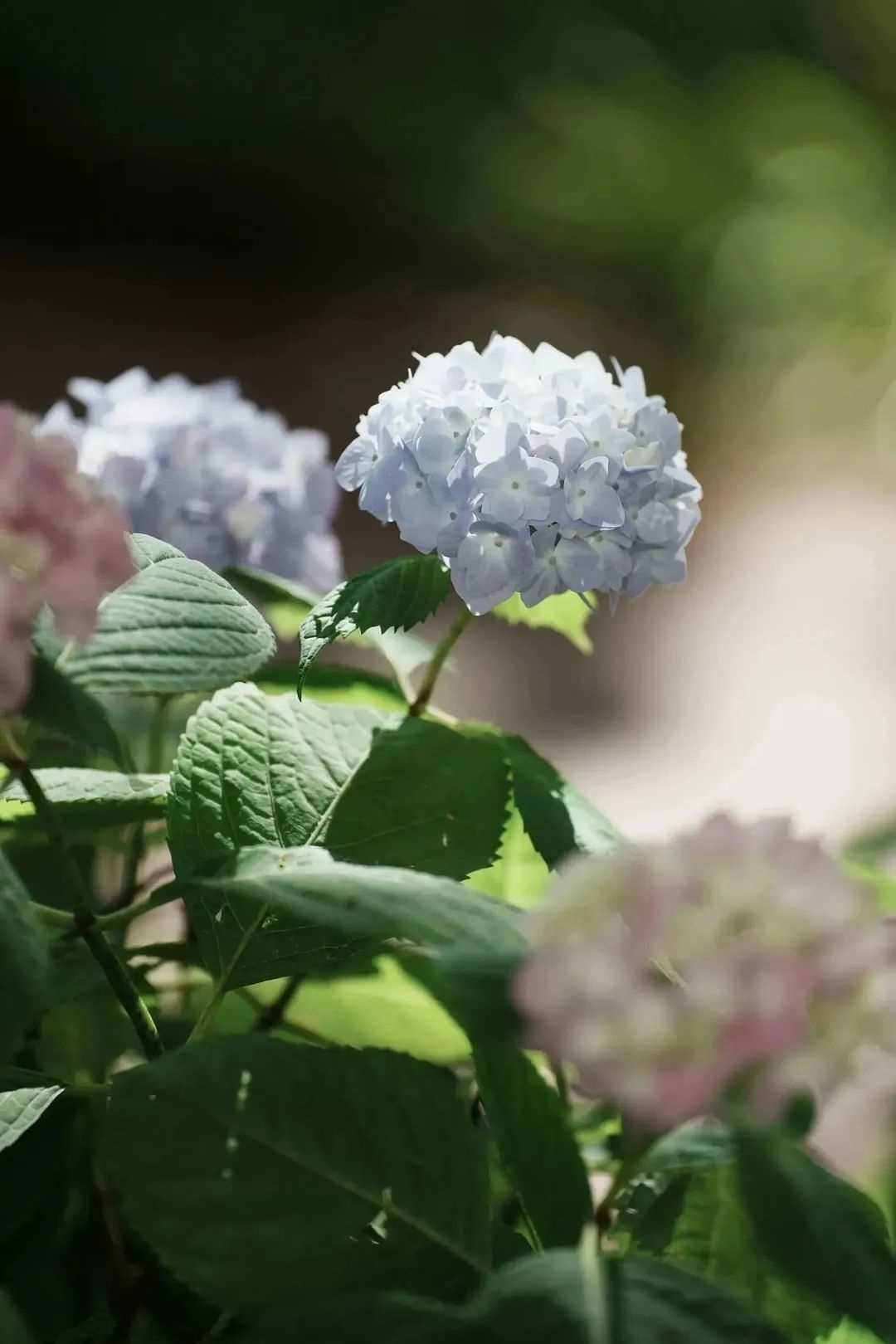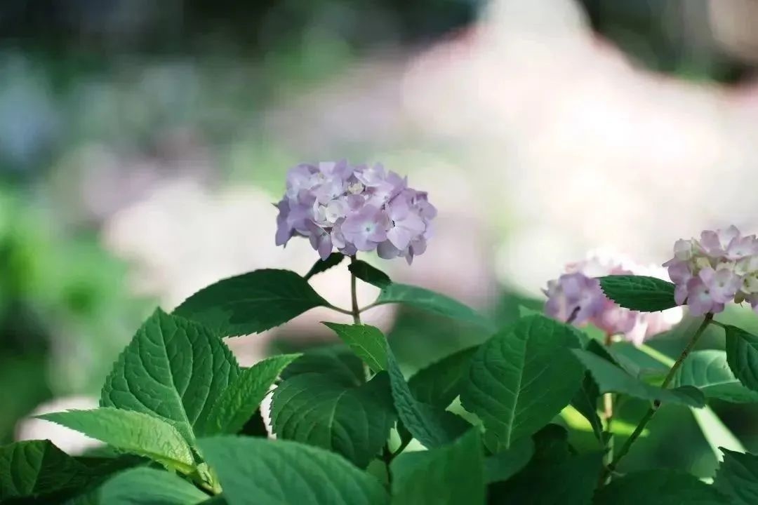 绣球花呈球形或半球形,花繁密至极,颜色如梦境般缥缈,像是从天堂中落下的一片柔软的云彩。有的又如同绣球般鲜艳耀眼,仿佛每一朵花都在诉说着属于它们的故事。