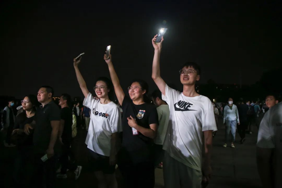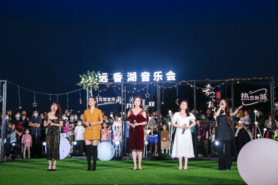 “晚风中闪过几帧从前啊,飞驰中旋转,已不见了吗……”由五位女歌手带来的歌曲《这世界那么多人》在粼粼湖波中荡漾开来,拉开远香湖之夜的序幕。市民康平和朋友打开手机闪光灯,伴随旋律轻轻摆动。“一下班就从外冈开车过来了,伴着夏夜的晚风听听歌很舒服。”康平说。