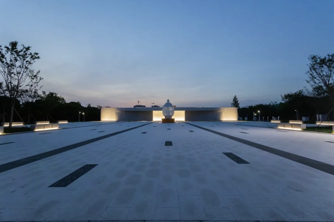 开阔的入口广场空间与言子雕塑,营造包容与开放的开放空间。
