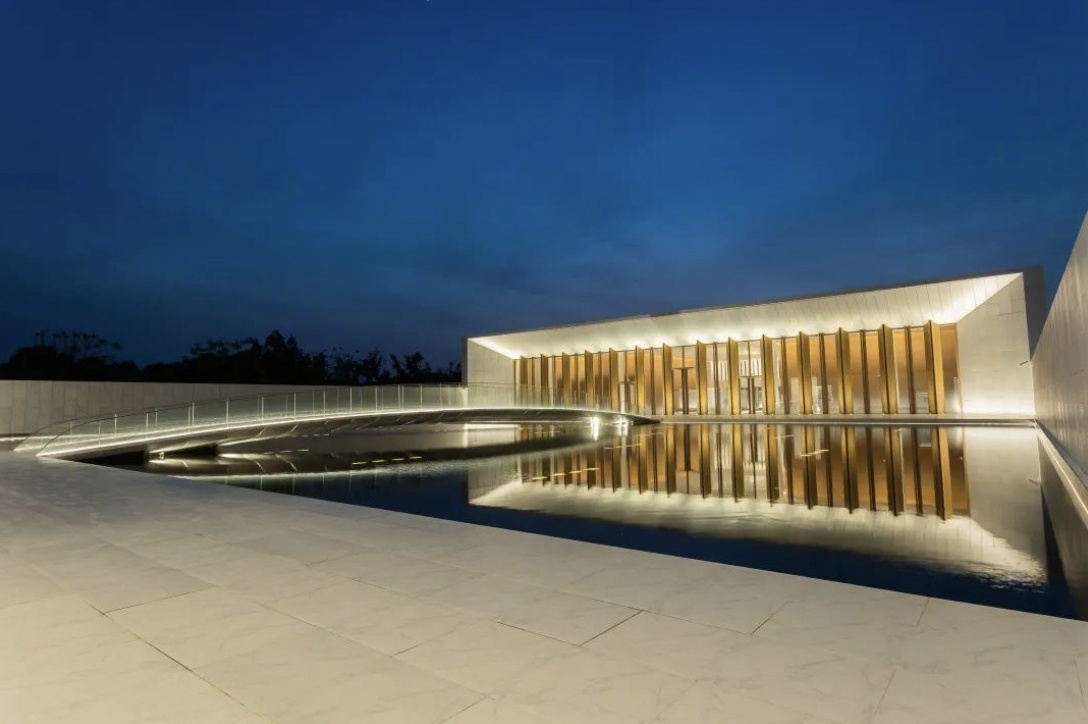 经过一段水道空间豁然开朗,仿佛从城市空间步入了一处世外桃源和文化圣地。静谧的空间氛围沉淀参观者的心绪,引领人们踏上言子讲学之路。