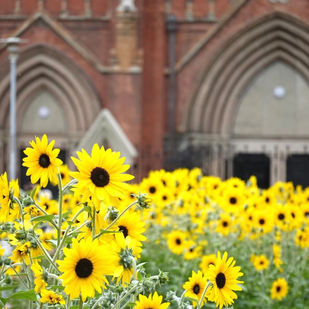 向日葵,一年生的菊科向日葵属草本植物。环境适宜的情况下,它可以长到1~3m高。它的茎秆直立生长,比较粗壮。向日葵(Helianthus annuus),因其花常朝着太阳而得名,又名朝阳花。英语的sunflower却是因其黄花开似太阳而得名。