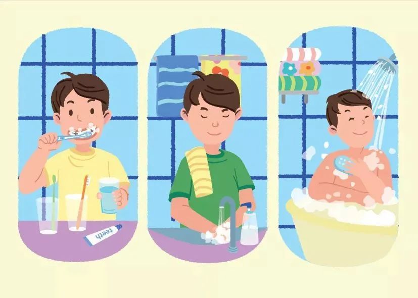 勤洗手、常洗澡、早晚刷牙、饭后漱口,不共用毛巾和洗漱用品。