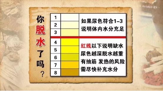而如果天气热、空气干燥、出汗多等,则要根据实际情况适当增加饮水量。大家可以留意一下自己的小便,如果颜色浅黄、清澈、量足,说明饮水量基本充足。