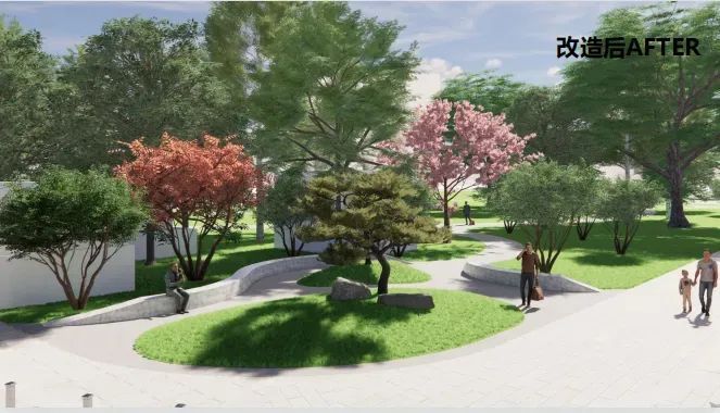 航吴绿地的方案设计呈现出多元化的街区形象,以人为本、尊重场地、因地制宜的原则,通过对周边区域人群分析在不同时间的交通与空间需求,结合现有空间打造出一个适合全天候、全龄域的弹性景观,为市民提供休憩、交流、健身、亲子活动等多样化空间及功能,充分体现出“人民城市人民建,人民城市为人民”的重要理念。