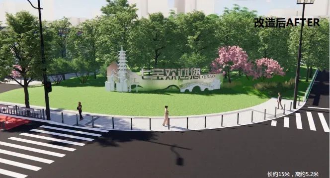 作为七宝镇东北门户的重要“名片”,在吴中路外环路口将打造名为“鸿运七宝”的雕塑与“七宝欢迎您”的构筑物作为地标形象节点。