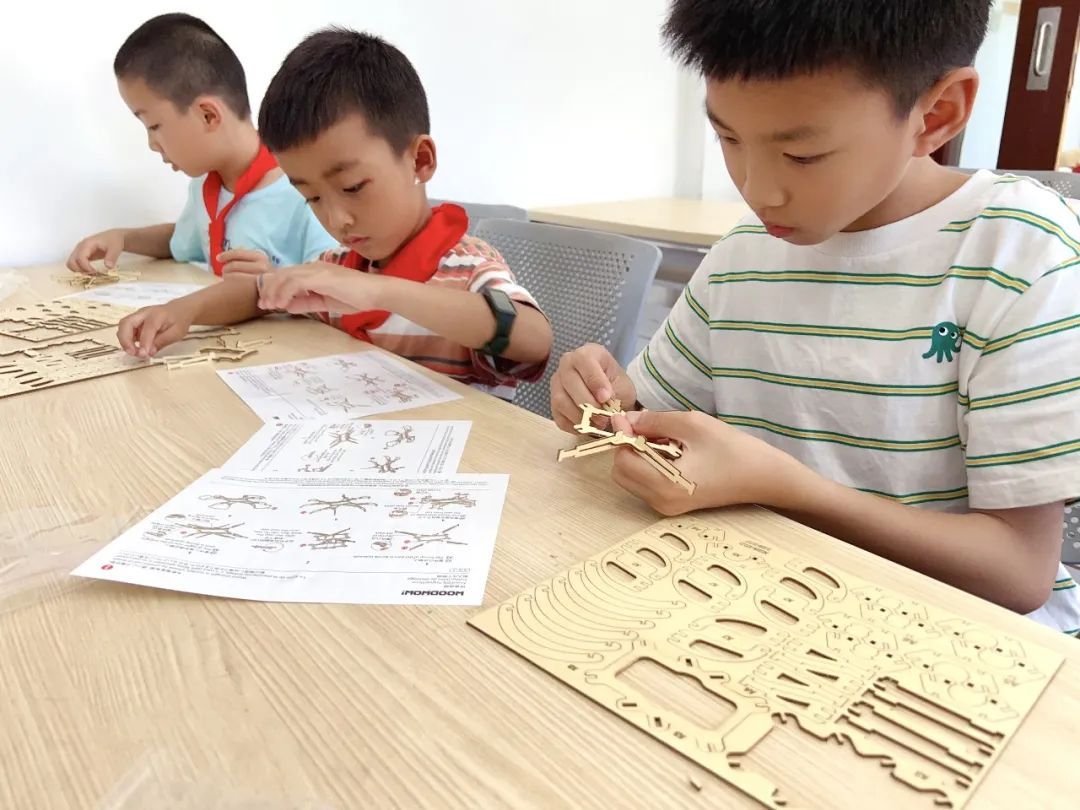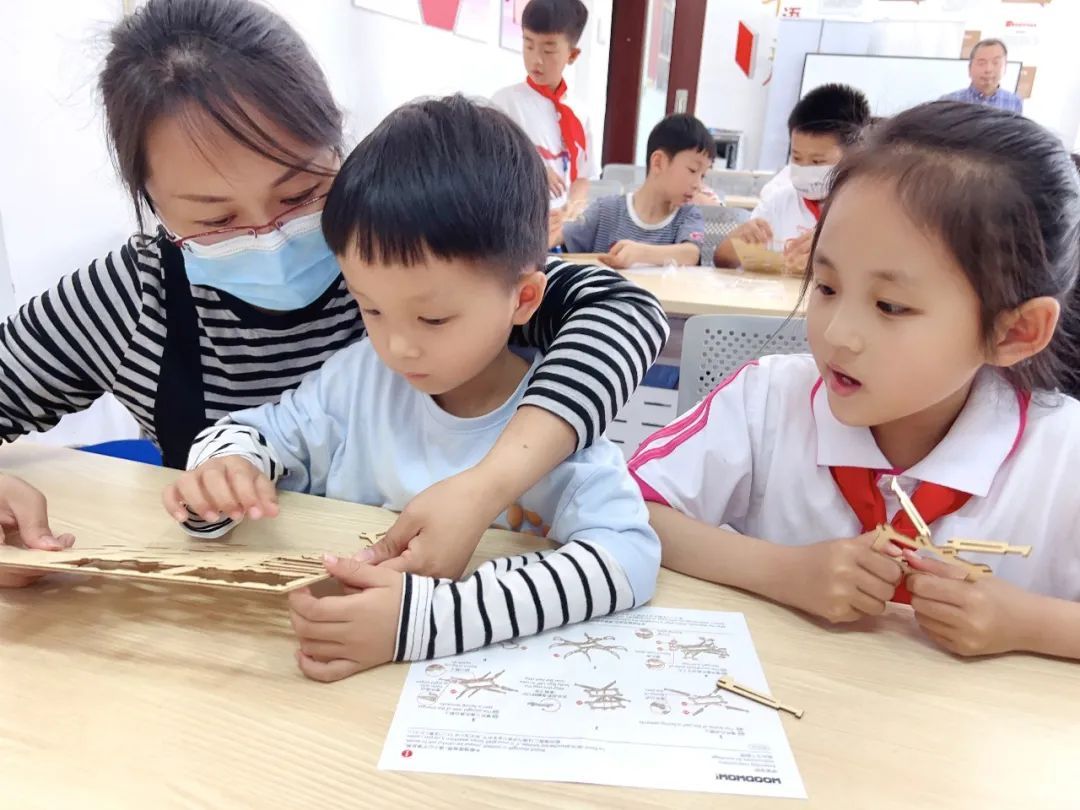到了激动人心的“无人机模型搭建”环节,在老师的指导下,孩子们按照教学步骤自己动手完成拼搭,模具初具成型后,又拿起彩笔对自己的作品进行“美化”,大家都兴奋不已!